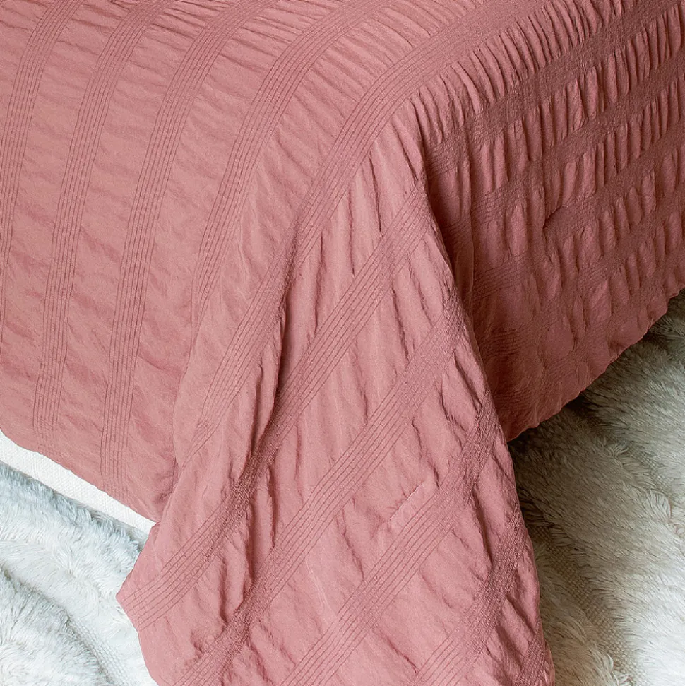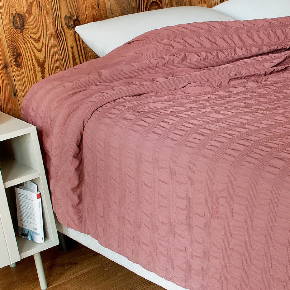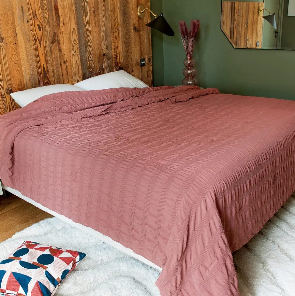 Mesurant 240 x 250 cm, cette jetée de lit présente des rayures gaufrées qui imitent à la perfection le look traditionnel du seersucker, ajoutant une texture subtile et un intérêt visuel à votre espace. La matière, à la fois douillette et moelleuse, assure une sensation de confort inégalée, transformant votre lit en un havre de douceur.