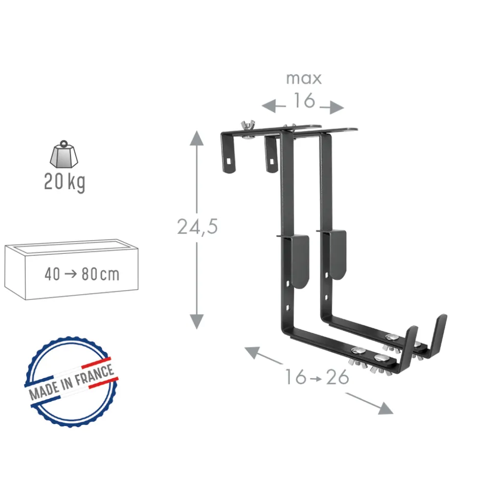 Ces crochets pour jardinière sont parfaits pour l’aménagement de vos espaces verts. Si vous manquez de place au sol, pourquoi ne pas opter pour des jardinières suspendues ? Disposées sur une terrasse ou en bordure de fenêtre, elles embelliront la façade de votre maison. Robustes, ces crochets ont été conçus pour supporter un poids de 20 kg. Ils résistent au gel et aux UV, et peuvent être installés à l’extérieur comme à l’intérieur, et ce, pendant toute l’année. Facile à entretenir, ils se nettoient à l’eau et au savon doux.