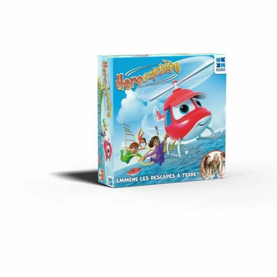 Tourne l’hélice de l’hélicoptere pour déterminer qui pourra accrocher a l’échelle un de ses personnages. Sois prudent et précis… car l’échelle se balance en permanence ! Qui sera le premier a ramener ses rescapés a terre ? De 2 a 4 joueurs.