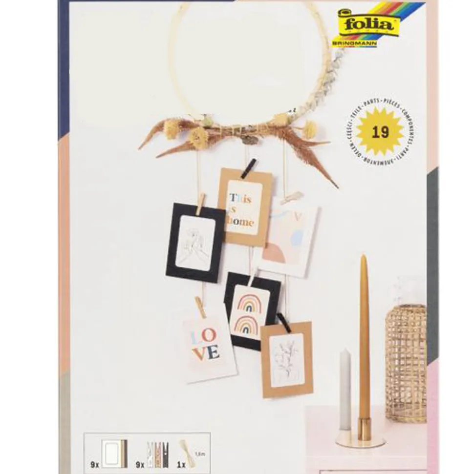 Kit pour créer une guirlande de cadres à suspendre en décoration dans une chambre, un salon ou pour un évènement : mariages, anniversaires, baptêmes…Vous pouvez y glisser des photos souvenirs, des dessins ou des citations que vous aimez.
