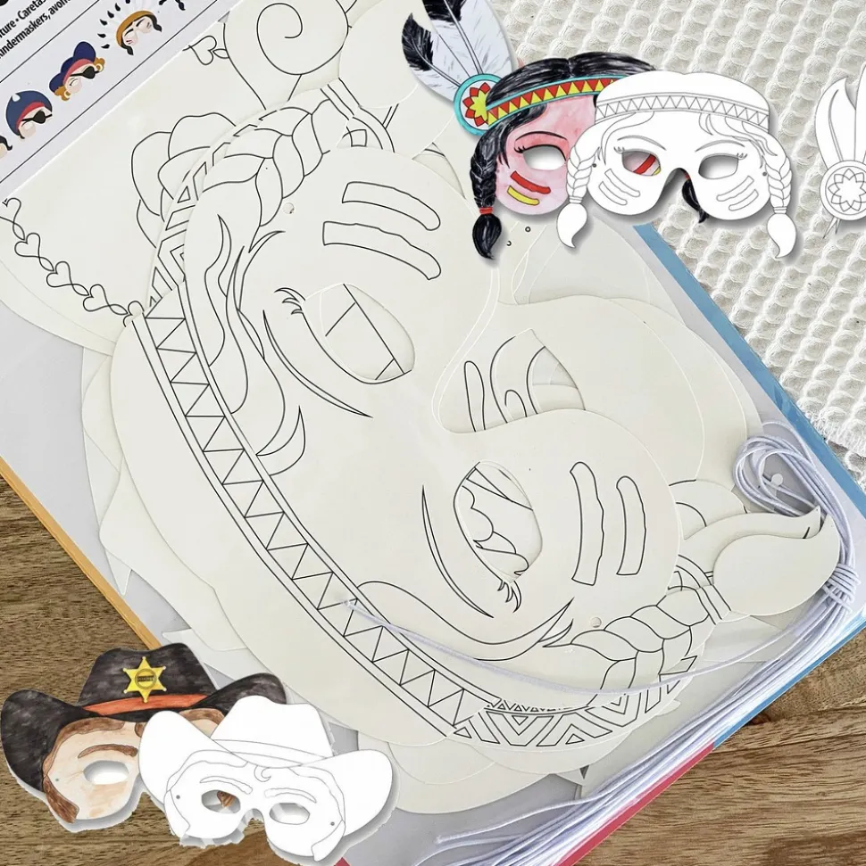 Ce kit de masques à thèmes en carton à confectionner est l’allié de jeu idéal des enfants ! 6 masques différents avec un thème pour chacun d’entre eux. Pirates, cowboys… à vous de décider !