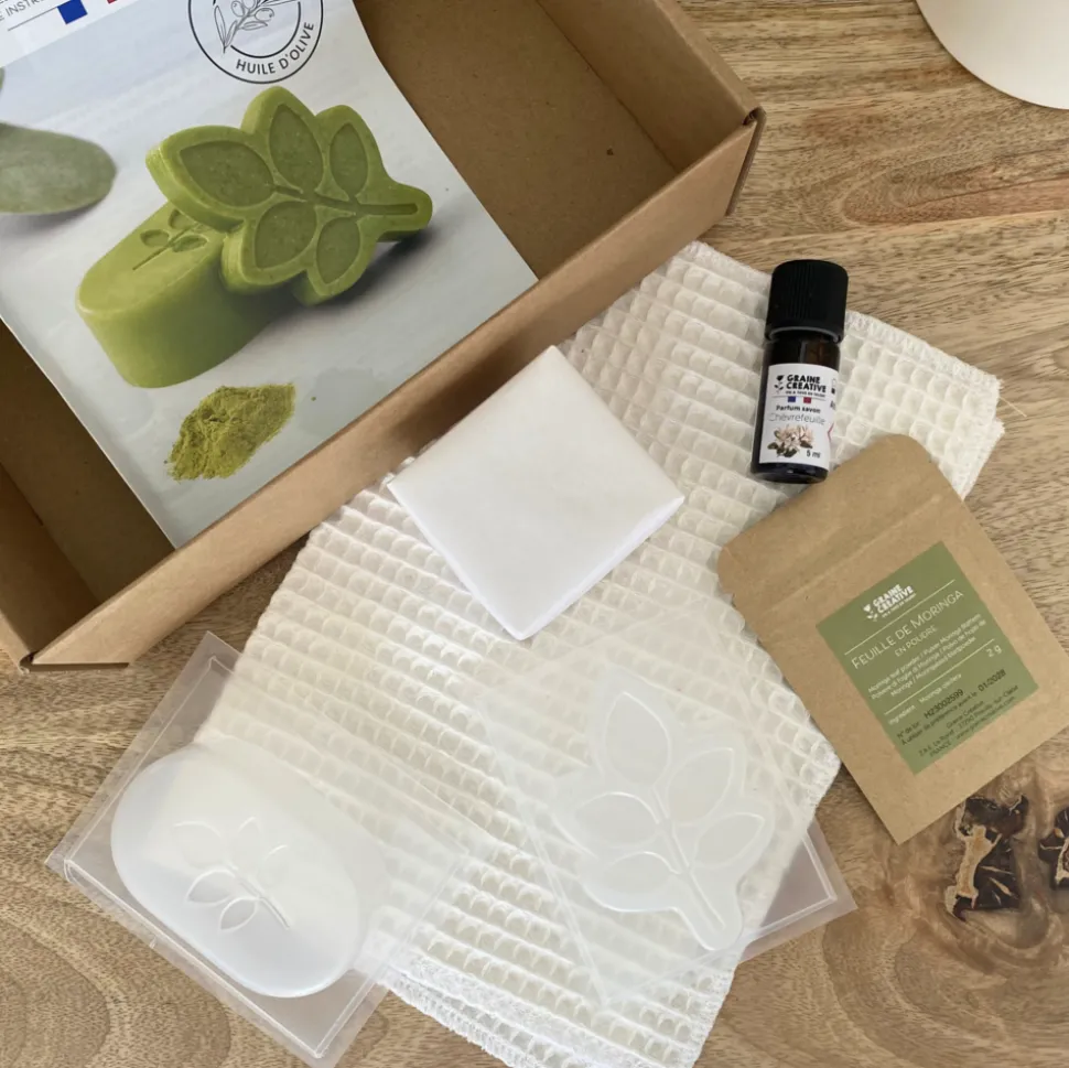 Ce kit permet de fabriquer ses propres savons solides à base de poudre de Moringa.Riche en vitamines et minéraux, la poudre de moringa a des vertus antiseptiques et apaisantes pour la peau.Que contient mon KIT DIY : Coffret au Moringa ?