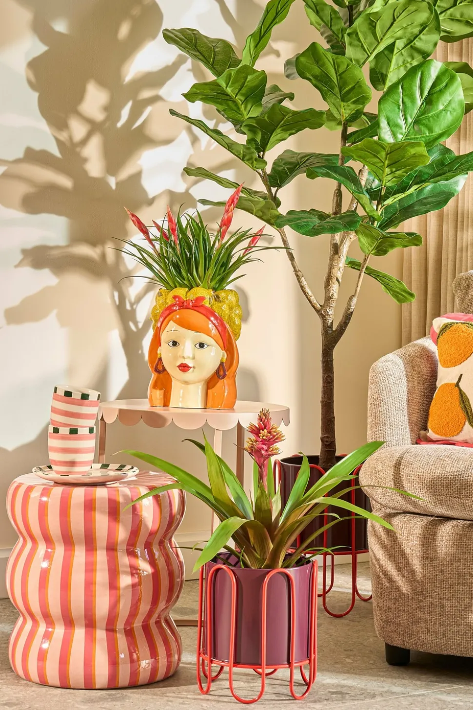 Avec les pots de fleurs sur pied Dione, donnez un podium audacieux à vos plantes ! Cet ensemble saisissant est disponible dans une combinaison de deux teintes rouges différentes : rouge foncé et rouge clair. Le matériau métallique garantit leur robustesse et leur résistance à l’eau. Placez-les dans n’importe quelle pièce intérieure, de l’entrée à la chambre. Le petit pot mesure H25 x Ø23 cm et le grand pot H35 x Ø25,5 cm. Disposez-les ensemble en duo ou répartissez-les dans la maison pour ajouter une touche de couleur dans différentes pièces.