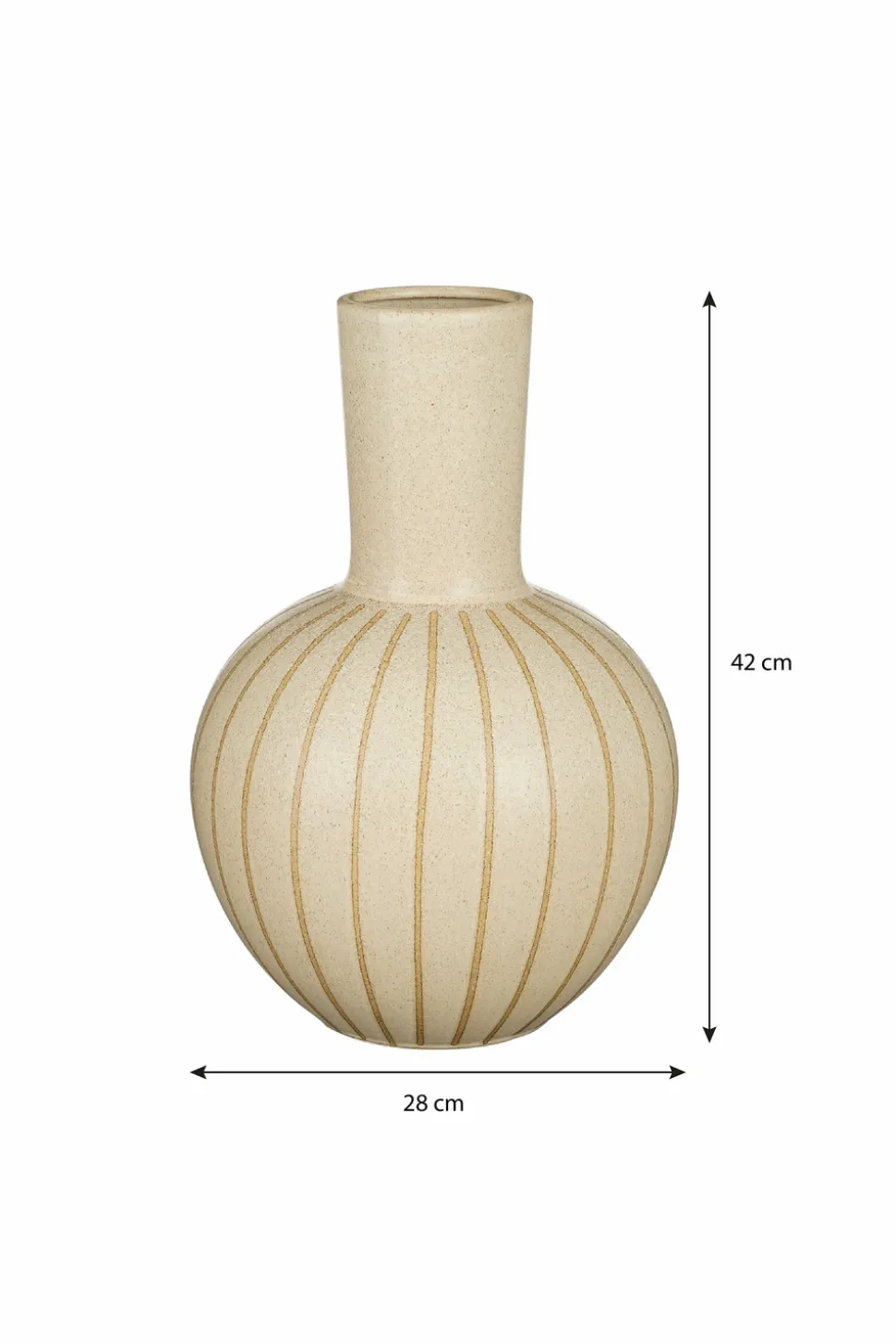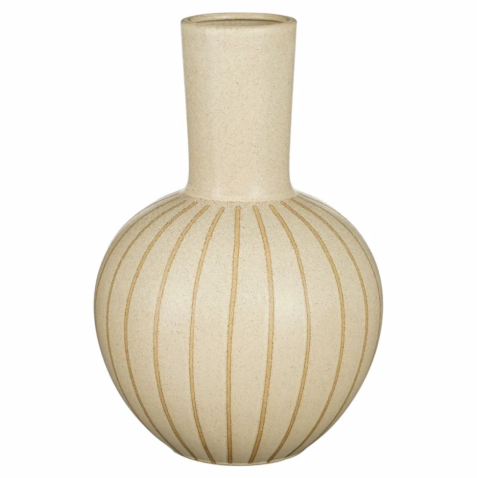 Que vous souhaitiez y ajouter des fleurs ou non, le vase Holm de Mica Decorations attirera certainement tous les regards dans votre maison. Le vase est fabriqué en céramique robuste. Avec sa couleur crème neutre et sa forme ronde au centre, recouverte de lignes foncées, ce vase attire immédiatement l’attention. Quelques fleurs, plumes ou branches décoratives permettent également de créer une ambiance chaleureuse. Ce vase de couleur crème a une hauteur de 42 cm et un diamètre de 27,5 cm. Également élégant à combiner avec plusieurs vases Holm de Mica Decorations ! | Attention : les vases en céramique sont poreux et ne sont jamais étanches à 100 %.
