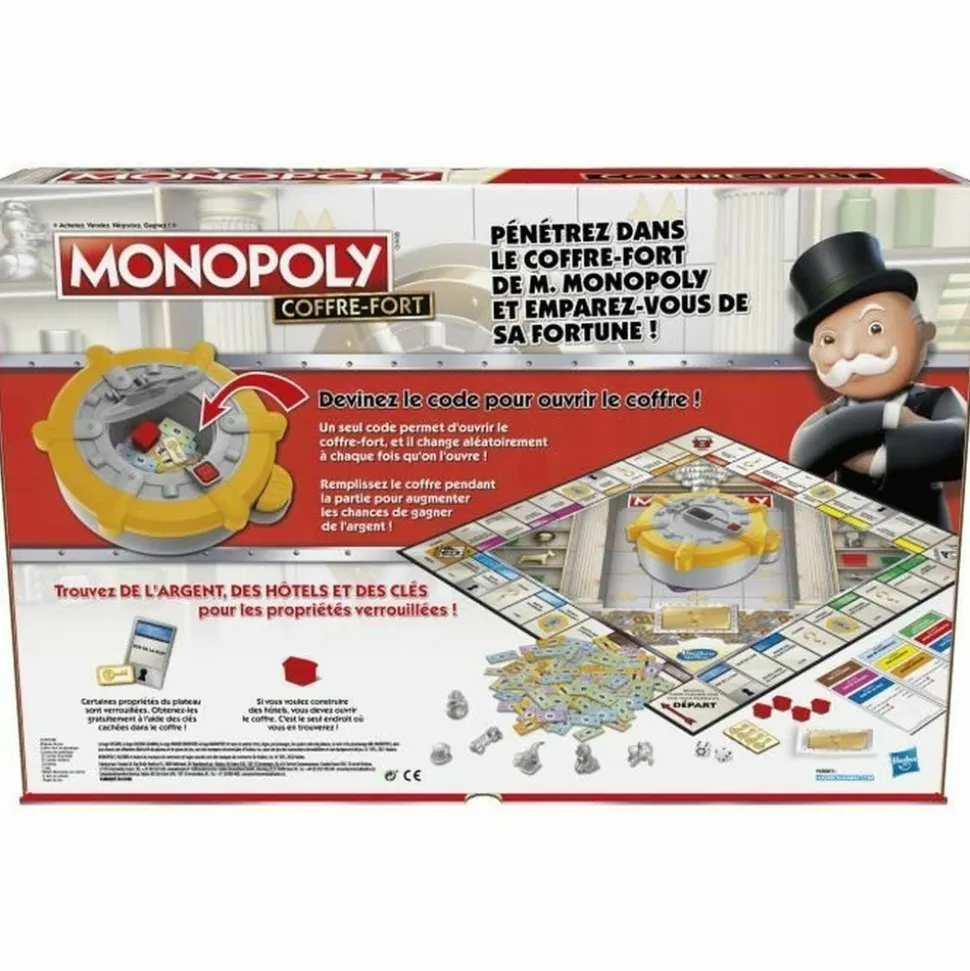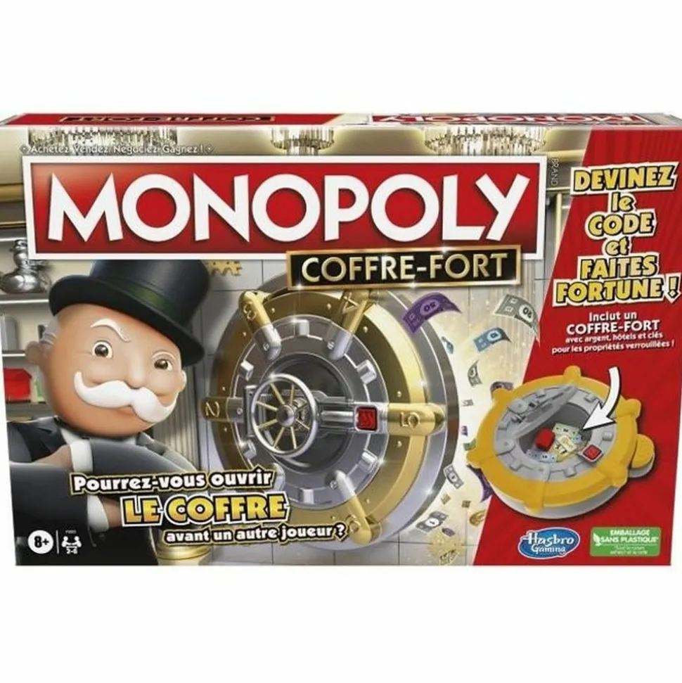 Les joueurs tentent de deviner le code pour s’enrichir ! Monopoly Coffre-fort est un jeu de plateau pour enfants (des 8 ans) qui inclut le coffre-fort de M. Monopoly rempli d’objets précieux qui permettront aux joueurs de s’enrichir.