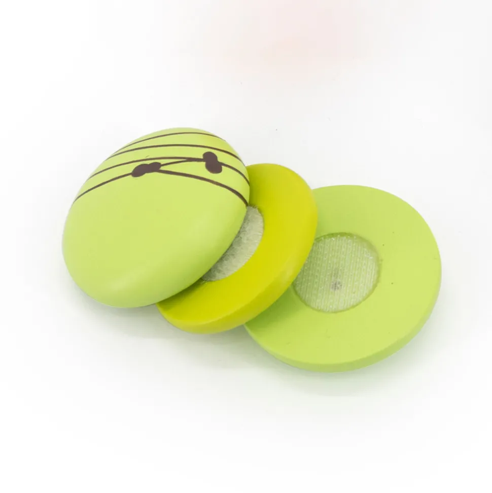 Un ensemble de 6 magnifiques macarons en bois colorés.