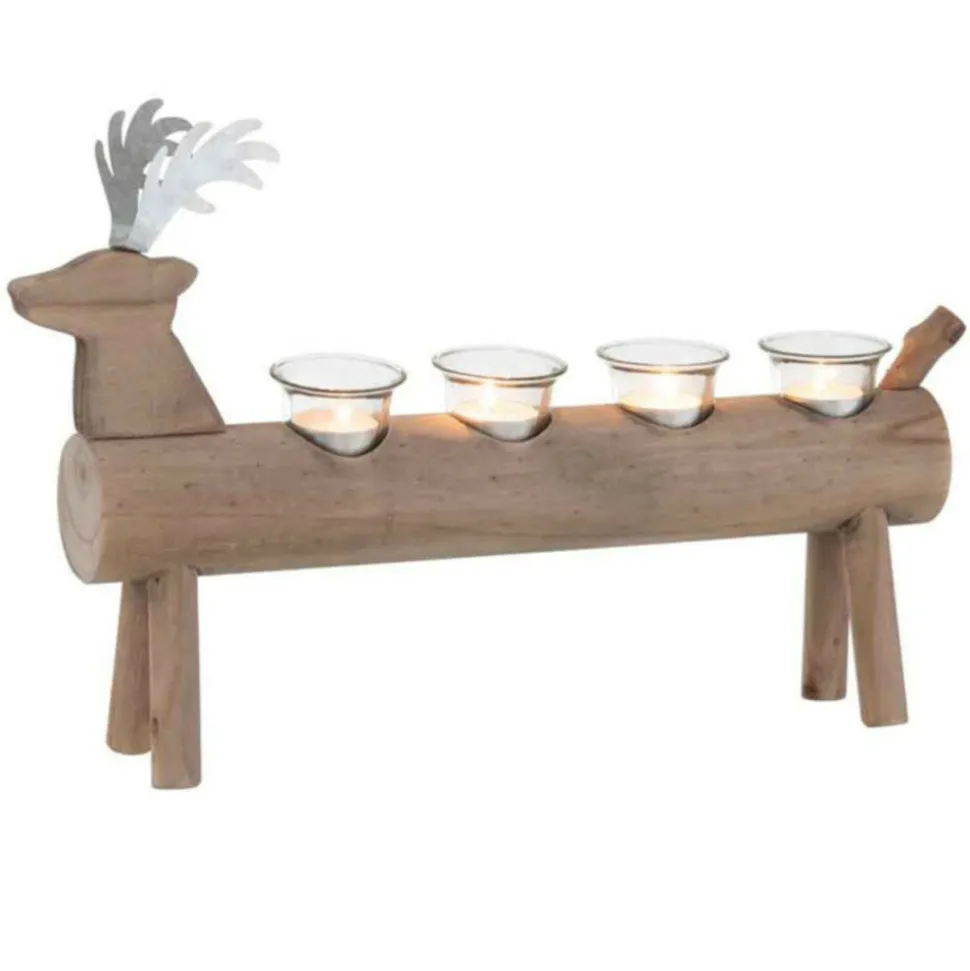Dimensions : L. 47 x l. 9 x H. 27,5 cmMatière : BoisSpécificités :Pratique & ChicPhotophore Déco4 SupportsDesign CerfPoids : 0,54 kgCouleur : Marron