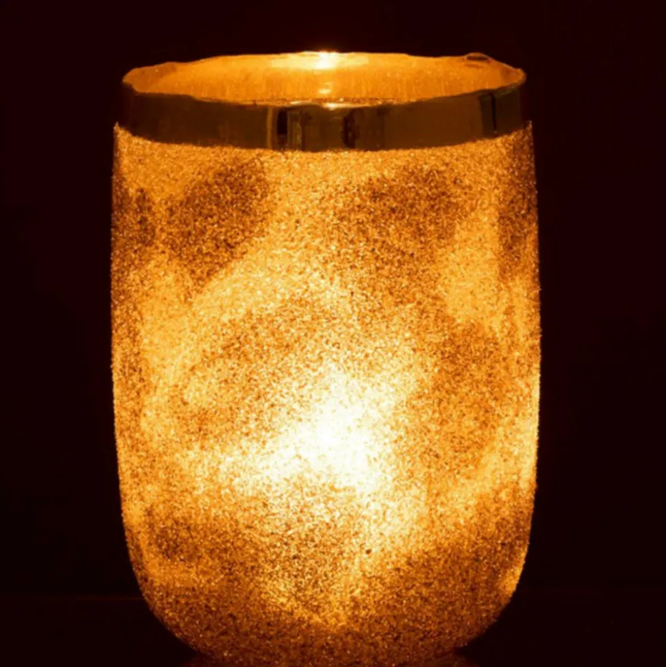Dimensions : D. 18 x H. 25 cmMatière : VerreSpécificités :Tendance & OriginalPhotophore DécoFacile d’entretien & d’utilisationPoids : 1,5 kgCouleur : Argent & Or