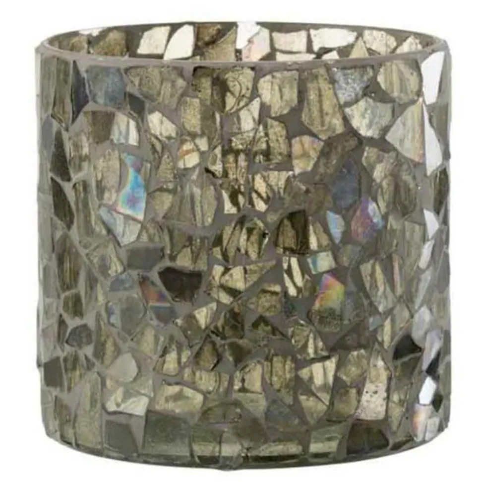 Dimensions : D. 16 x H. 16,5 cmMatière : VerreSpécificités : Pratique & UtilePhotophore DécoForme RondeDesign MosaïquePoids : 1,03 kgCouleur : Vert & Gris