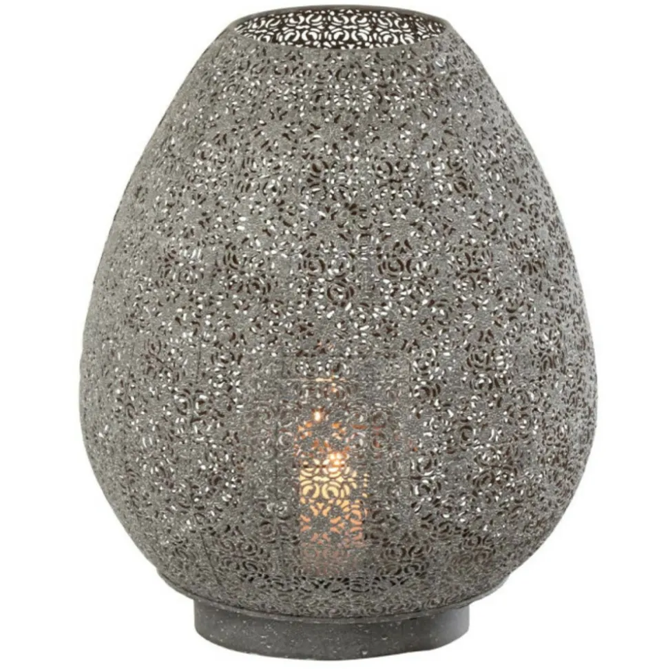 Dimensions : L. 37 x l. 37 x H. 44 cmMatière : MétalSpécificités :Moderne & TendancePhotophore designForme RondeStyle OrientalFacile d’entretien & d’utilisationPoids : 2 kgCouleur : Gris