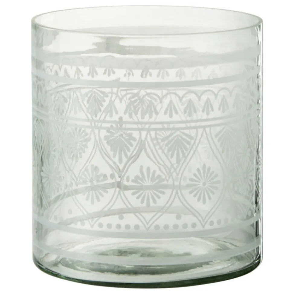Dimensions : D. 15 x H. 16 cmMatière : VerreSpécificités :Pratique & TendancePhotophore DesignForme RondeA MotifsConvient à un Usage ExtérieurPoids : 0,96 kgCouleur : Transparent