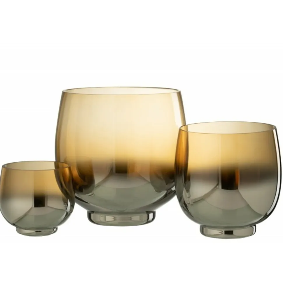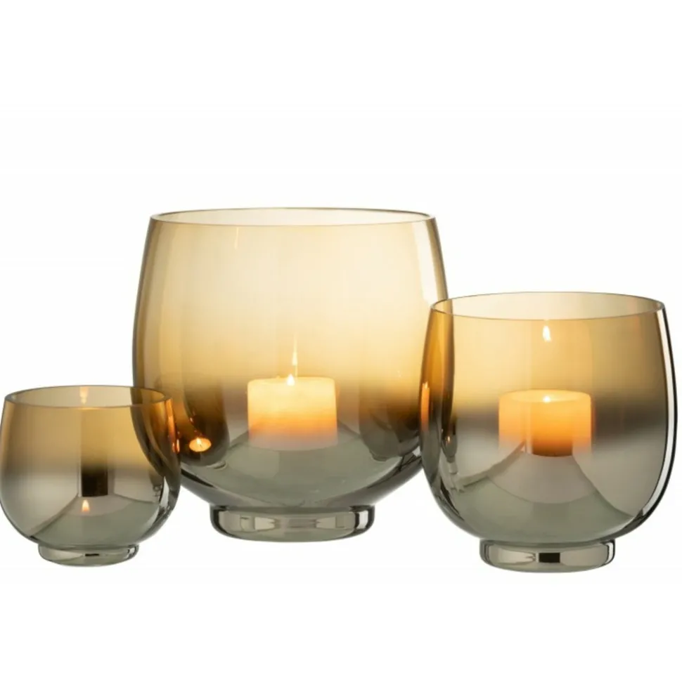 Dimensions : D. 14 x H. 14 cmMatière : VerreSpécificités :Tendance & ChicPhotophore DesignSur PiedForme RondeVerre FuméPoids : 0,45 kgCouleur : Argent & Jaune