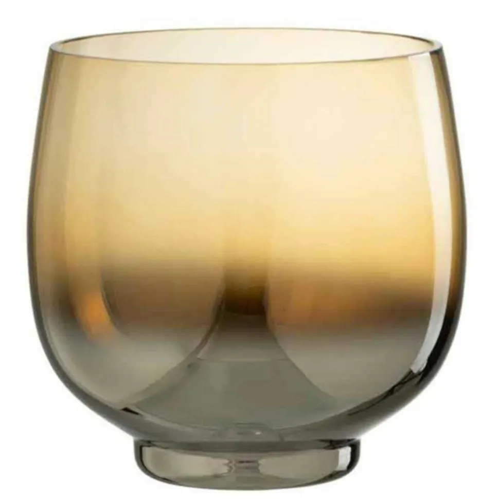 Dimensions : D. 18 x H. 18 cmMatière : VerreSpécificités :Tendance & ChicPhotophore DesignSur PiedForme RondeVerre FuméPoids : 0,75 kgCouleur : Argent & Jaune