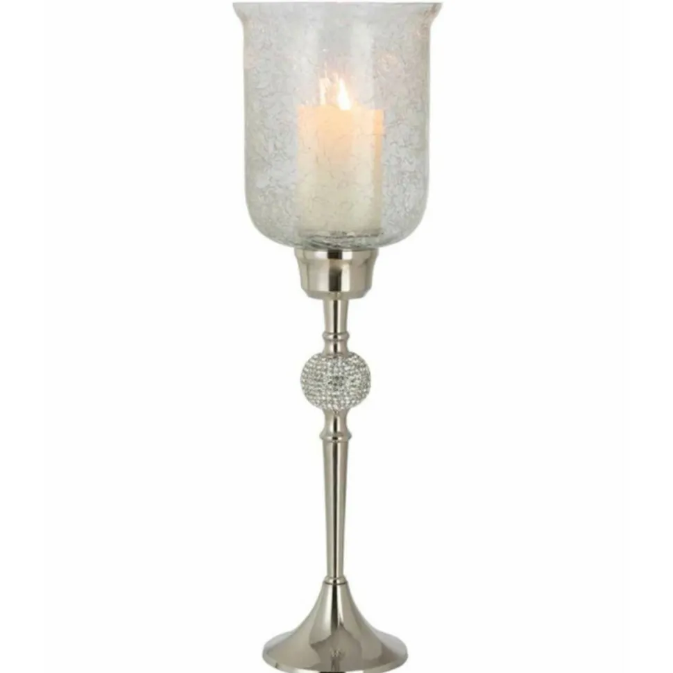 Dimensions : D. 17,5 x H. 55,5 cmMatières : Verre & AluminiumSpécificités :Tendance & ModernePhotophore DesignSur PiedForme RondeDesign Sphère DiamantEffet CraqueléA monter soi-mêmePoids : 1,79 kgCouleur : Argent
