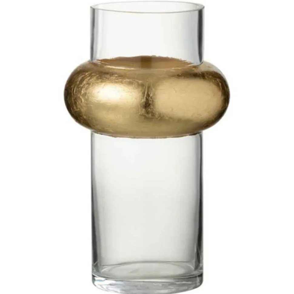 Dimensions : D. 14 x H. 25 cmMatière : VerreSpécificités :Pratique & ChicVase DesignForme RondeBague Cylindrique en HautPoids : 0,6 kgCouleur : Transparent & Or