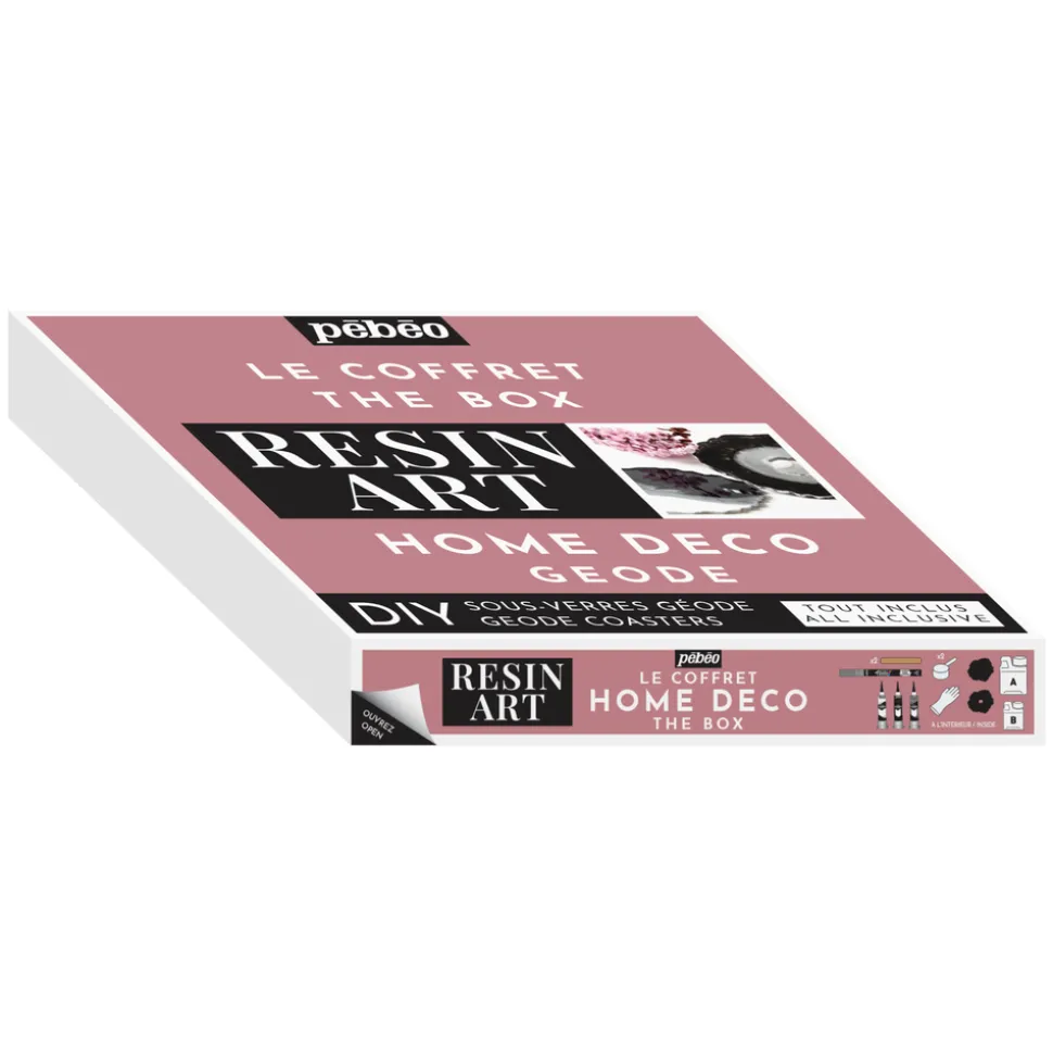 Un coffret complet pour découvrir l’activité résine. Tendance du moment ! Ce coffret vous permettra de réaliser des dessous de verre forme Géode.