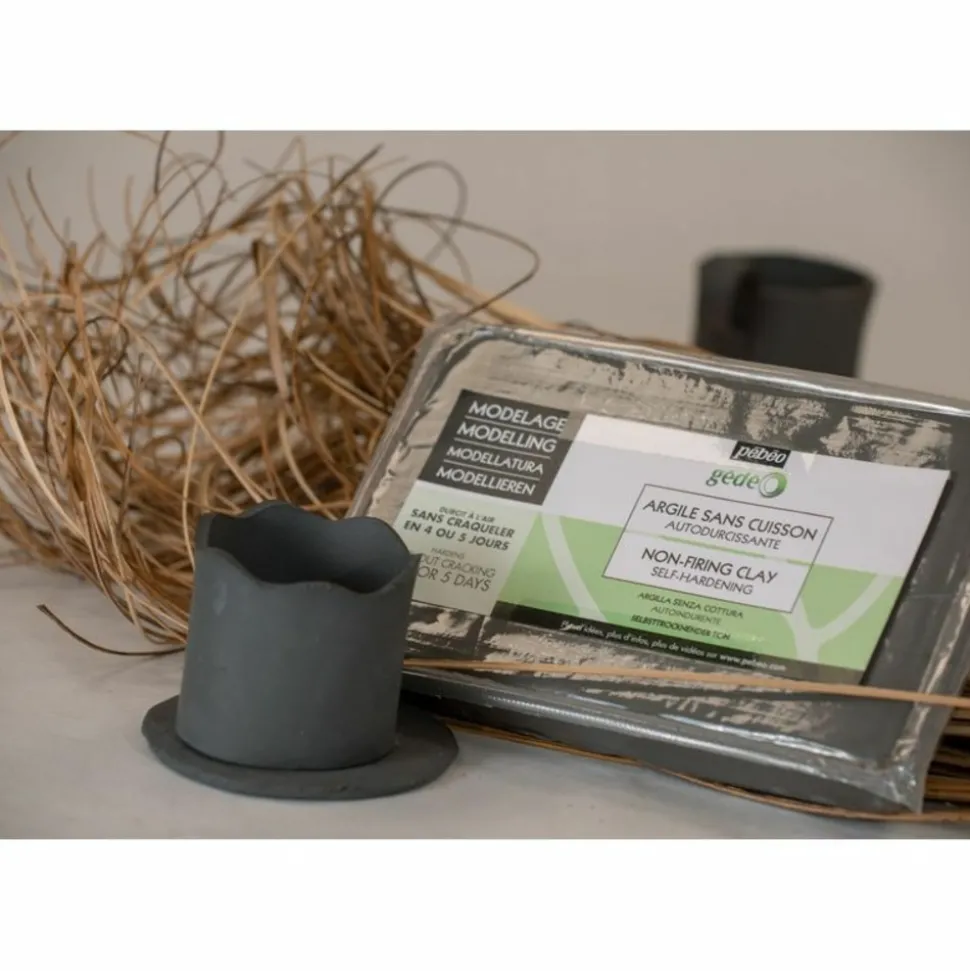 Argile naturelle sans cuisson pour modelage. Idéale pour ceux qui souhaitent faire du modelage avec des détails fins. L’avantage de l’argile sans cuisson est qu’elle s’auto durcit et devient très solide et durable. Attendez 4 ou 5 jours pour un obtenir séchage complet, vous pourrez ensuite la peindre, la vernir, la tailler, ou la perforer. De plus, en appliquant un imperméabilisant, vous pourrez la rendre étanche. Après séchage, l’argile ne craquelle pas et ne fait pas de fissures. Elle se nettoie facilement à l’eau, sur la peau ou les vêtements. Format : 1,5 kg.