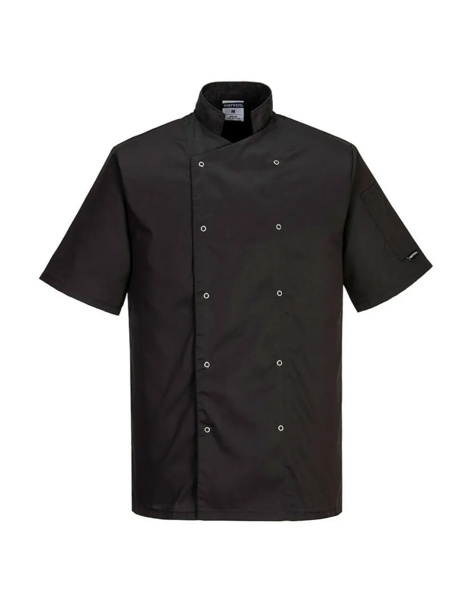cette veste de cuisine moderne et élégante est ce qu’il vous faut pour vos équipes. Tissu léger et résistant lavage après lavage. Col mandarin, fermeture pression et poche manche.