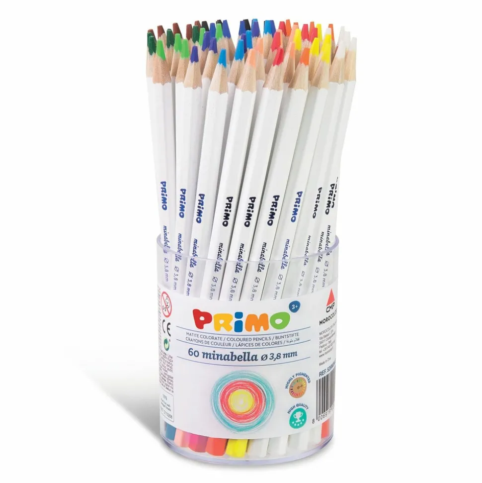 Laissez libre cours à votre créativité avec ce grand pot de 60 crayons de couleurs Minabella ! Les tons des crayons Minabella sont intenses et durables. Crayons de couleur hexagonaux de haute qualité avec une mine plus épaisse, résistante et hautement pigmentée. Ils sont faciles à tailler et conviennent à tout type de papier. Dimensions : Ø 3.8 mm. Dimensions : 7,5 x 7,5 x 17,5 cm.