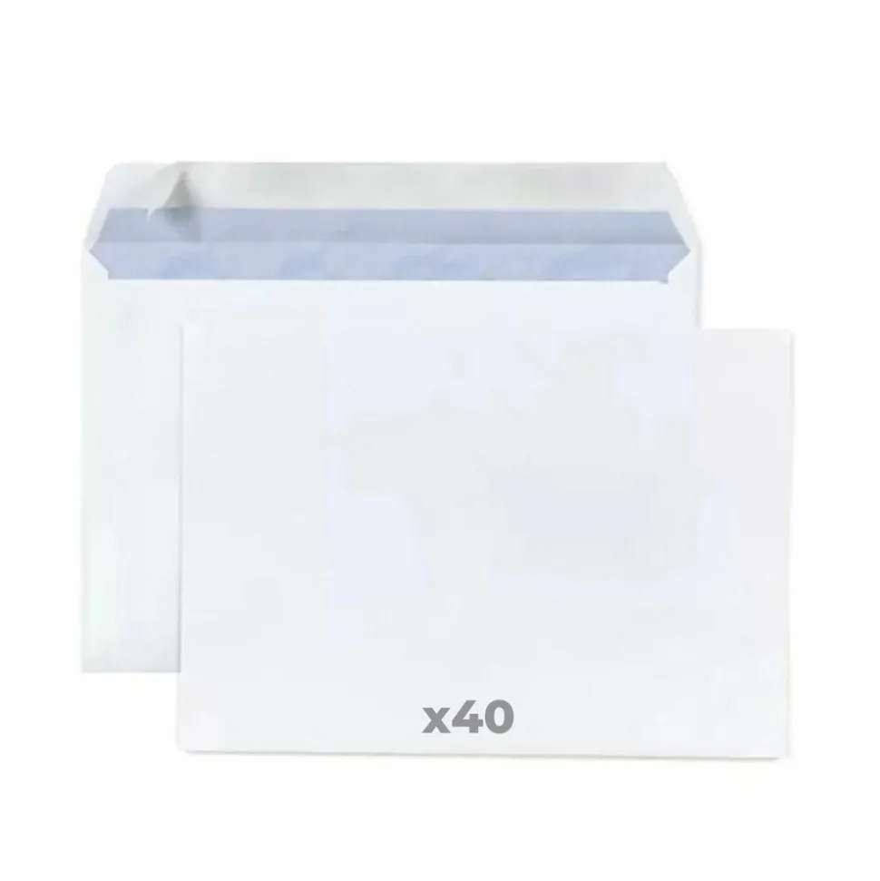 Enveloppes totalement opaques pour masquer le contenu, sans fenêtre. Fermeture par patte autocollante avec bande protectrice. Norme française. 40 enveloppes blanches recyclables. Fermeture par patte autocollante avec bande protectrice. Compatibles avec les impressions laser et jet d’encre. Format C5 (162 x 229 mm), adapté à un papier A5.