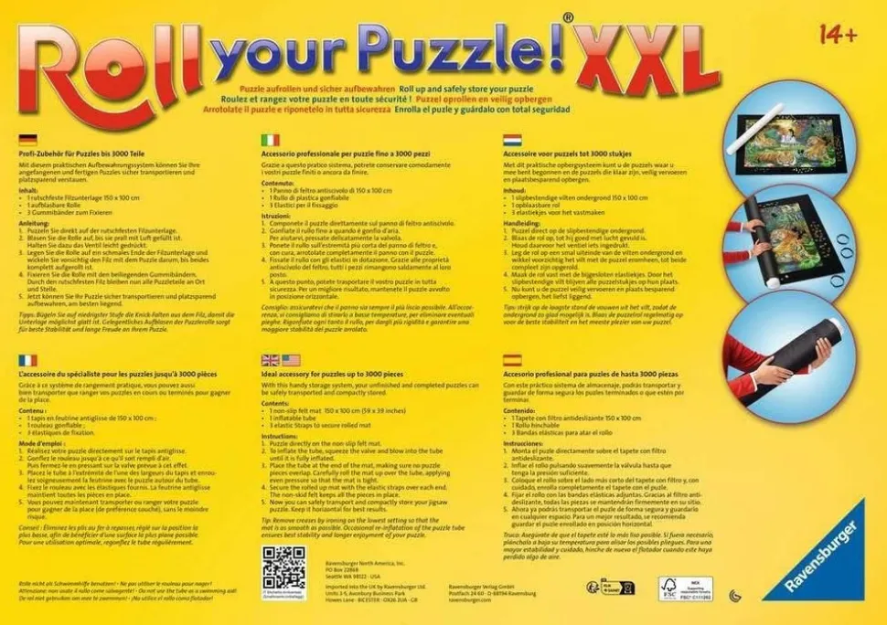 La mallette pratique et bien pensée permet de trier les pieces et de ranger son puzzle, meme en cours d’assemblage. Montez vos puzzles de 300 a 1 000 pieces en toute sérénité grâce au tapis de feutrine antiglisse. Les 3 attaches élastiques permettent de tenir le rouleau bien fermé. Pas de perte de pieces, ni de perte de place !