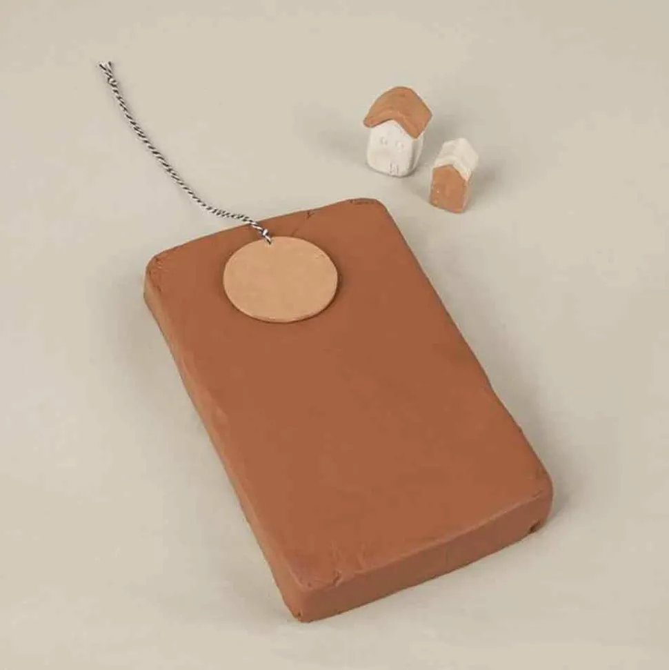 Argile brun foncé de 1kg séchant à l’air mesurant 19 x 12 x 3 cm, Sa consistance souple permet de faire de belles créations, Il n’est pas obligatoire de la cuire même s’il est possible de la cuire pour accélérer le séchage