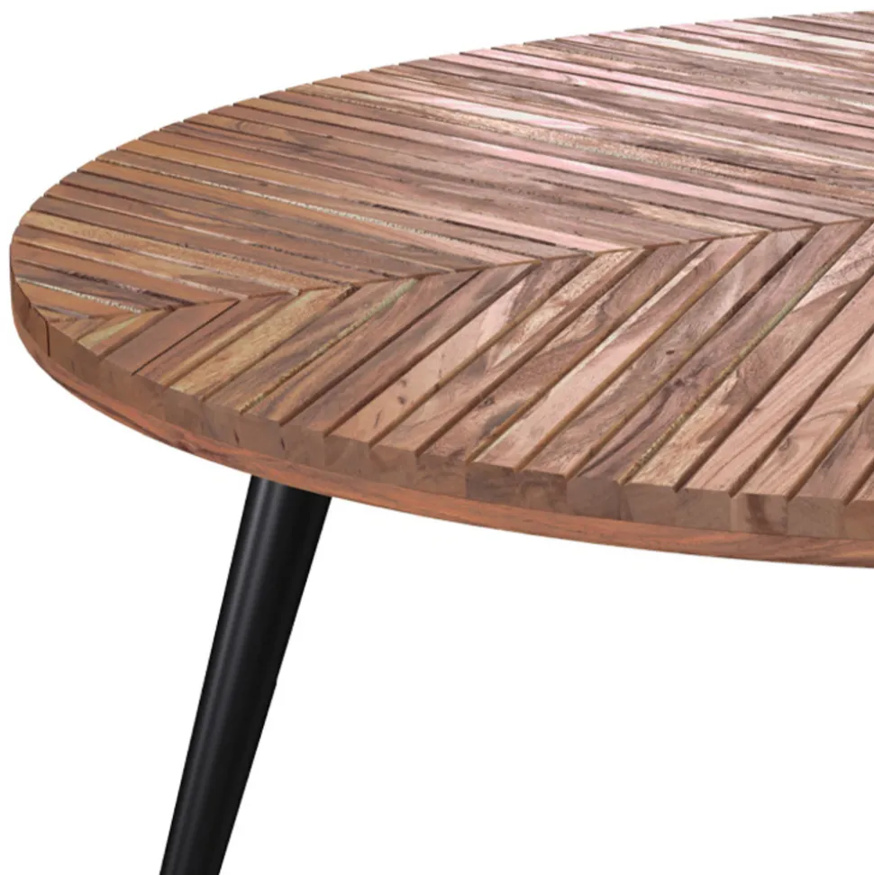 Matériau apprécié pour ses nuances et sa robustesse, l’acacia est un bois noble qui séduit à coup sûr. Dans cette version, le côté artisanal offre un design unique très chaleureux. La présence de pieds en métal noir forme un contraste harmonieux qui met en valeur cette essence privilégiée de l’ameublement.
