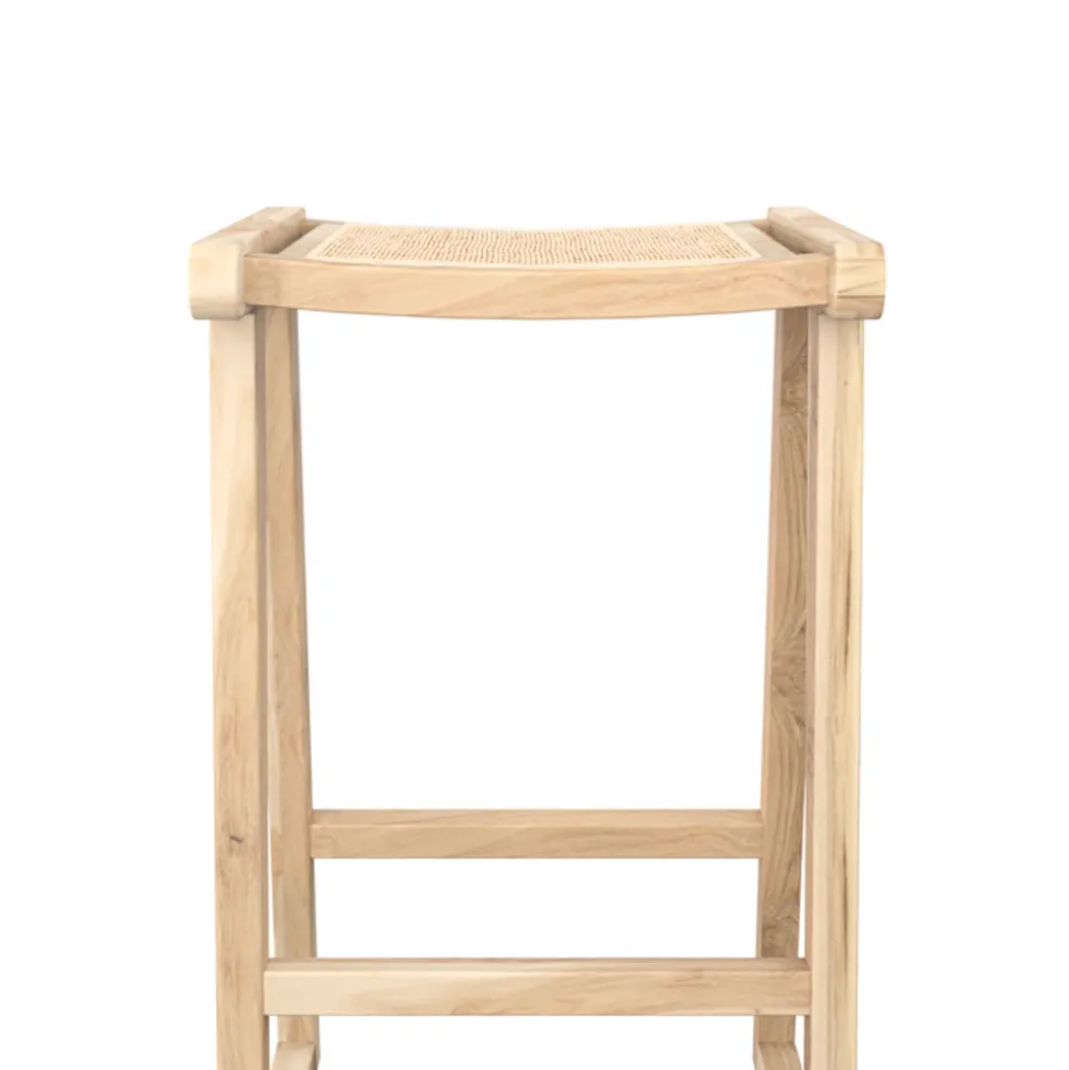 Réalisé en bois de teck massif, ce tabouret se distingue par un piètement traineau très stable et deux repose-pied. L’assise en rotin participe à l’esthétique épurée de ce siège coup de cœur. On a envie d’en profiter sur un balcon, une terrasse ou un patio.