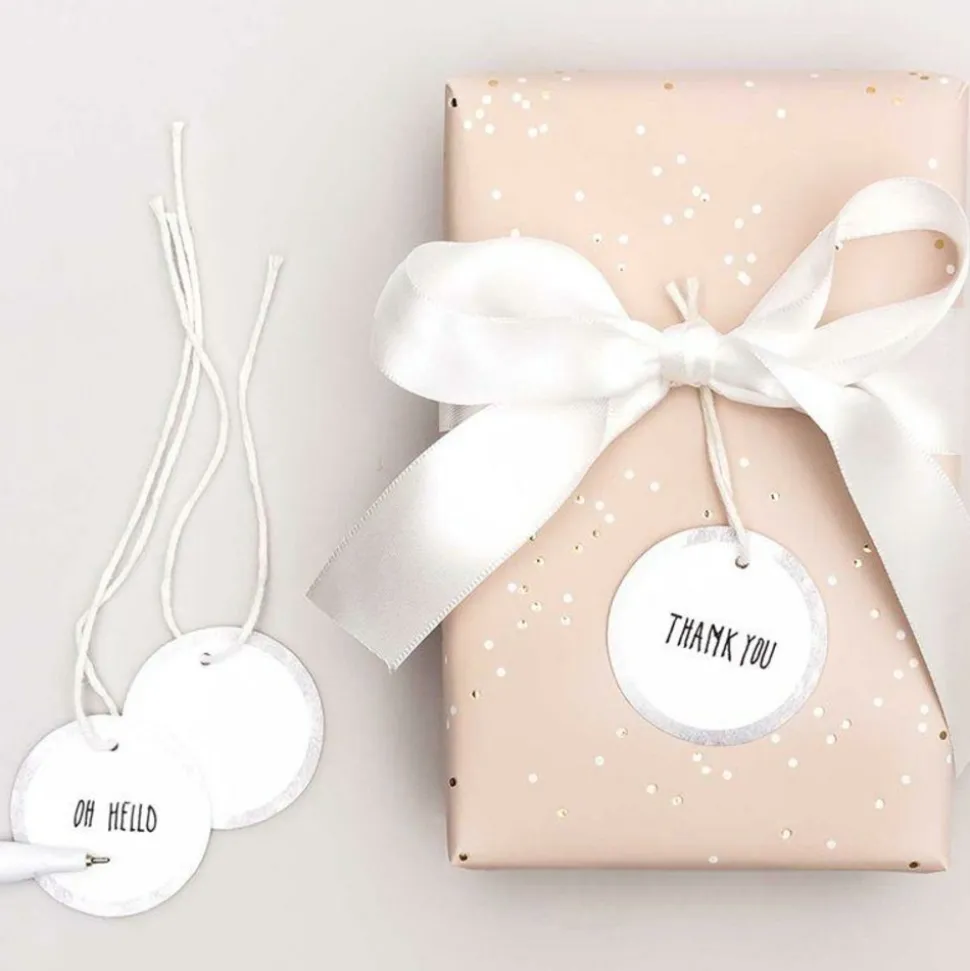 24 pendentifs ronds blancs. Customisez ces pendentifs et accrochez-les sur un sac, une trousse, un cadeau … pour les personnaliser !