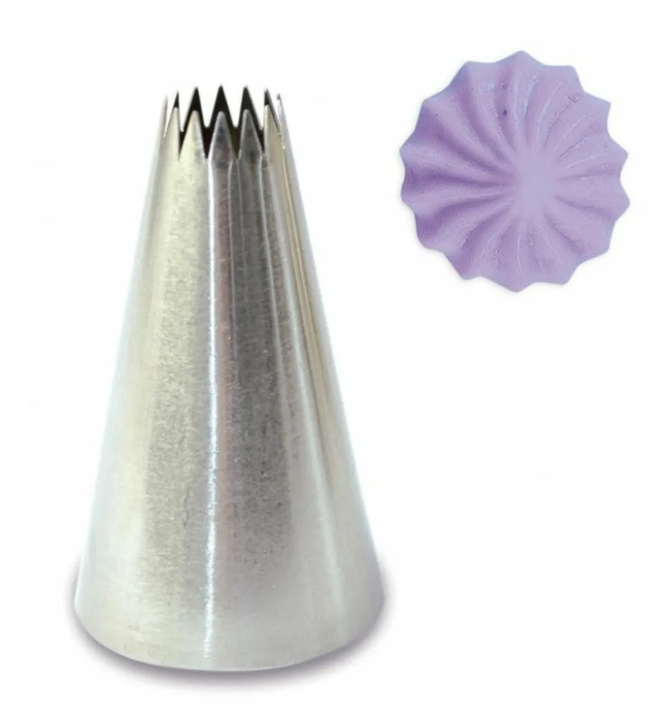 2 douilles pâtissières identiques. Douille à pâtisserie cannelée en inox pour décorer les pâtisseries, plus particulièrement les cupcakes, idéale pour dressser la chantilly ou les glaçages. Son embout dentellé vous permet de varier les décors sur vos réalisations. Une forme de belle striée apparait grâce à cette douille que vous pourrez utiliser avec notre poche à douille en tissu enduit ScrapCooking. Pour la nettoyer un passage sous l’eau chaude suffit. Dimensions : Ø1 x 5 cm Douille pâtissière cannelée en inox