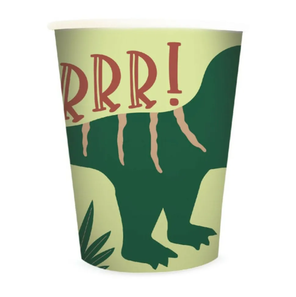 8 Gobelets cartonnés sur le thème Dino, idéals pour décorer une table à l’occasion de différents évènements: anniversaire, goûter, pique-nique, ou barbecue entre amis窶ère : Carton + PE apte au contact alimentaire 25cl