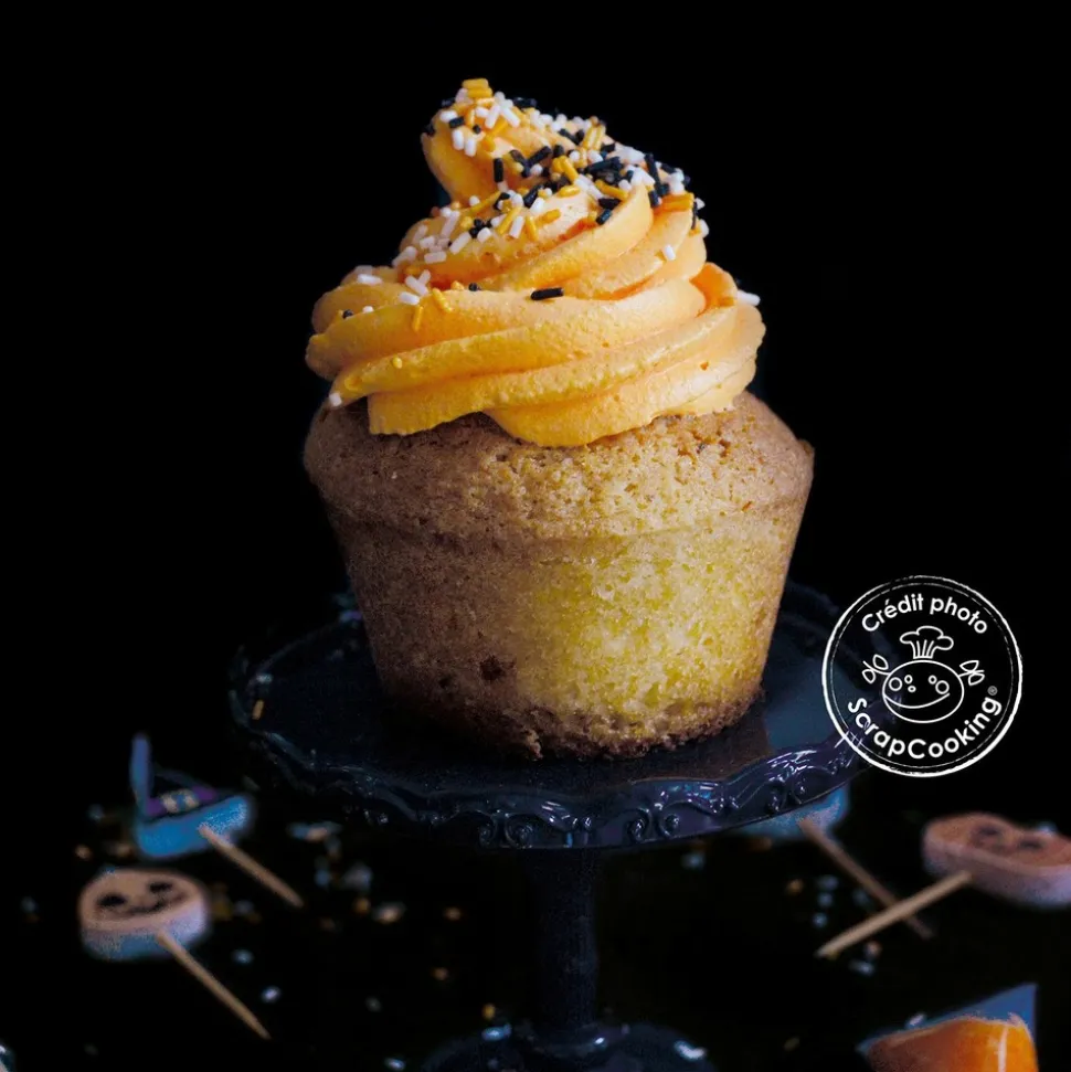 Vermicelles noirs : sucre, cacao maigre en poudre, sirop de glucose, huile végétale (coco, colza), colorant : E172, agent d’enrobage gomme laque, émulsifiant : lécithines, arômes. Vermicelles oranges : sucre, sirop de glucose, huile végétale (coco, colza)