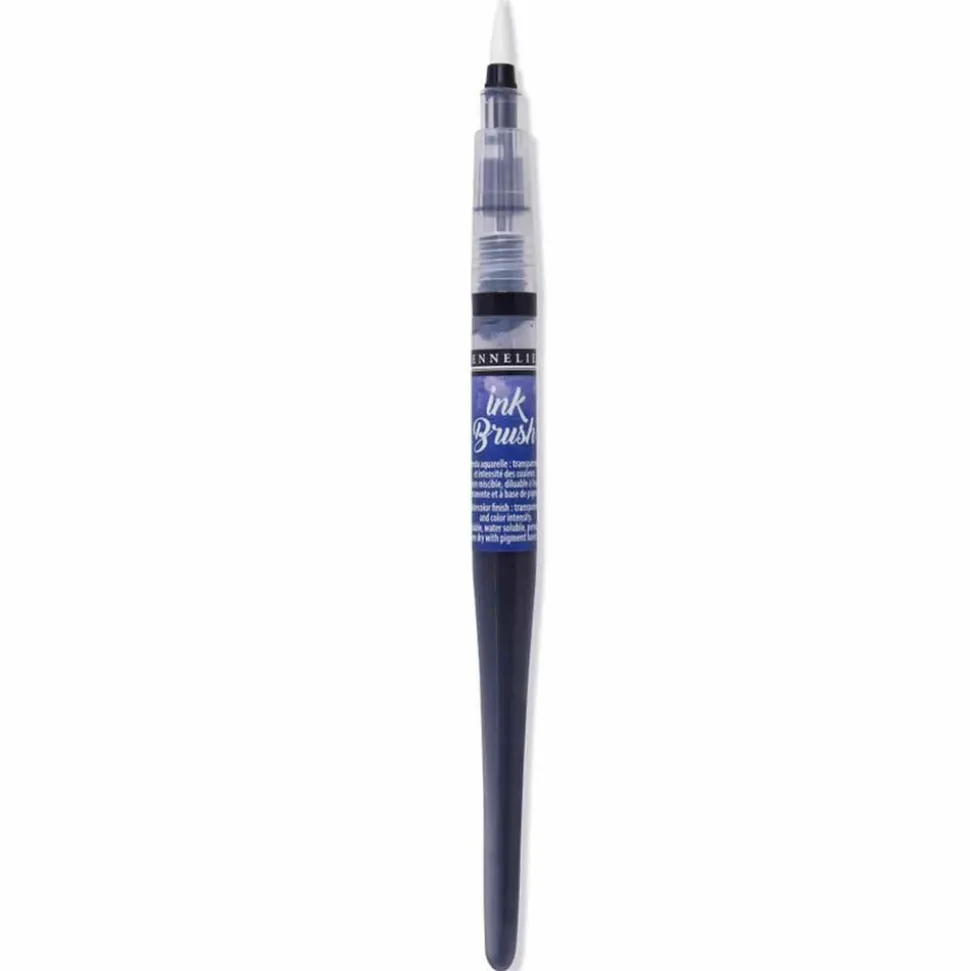 Stylo pinceau avec réservoir à encre prérempli de 6,5 ml offrant une prise en main similaire à un pinceau classique. Grâce à votre utilisation et à la variation de pression de la pointe sur le papier, vous pouvez obtenir différents tracés. Ce pinceau offre une large polyvalence et vous accompagnera dans vos activités de scrapbooking, de carterie, lettrage, bullet journal. Lancée par Sennelier en 2020, Ink Brush est une gamme de 36 pinceaux d’encre diluable à l’eau. Ce pinceau, dessiné par Yves-Marie Salanson, le directeur artistique de la maison Sennelier, est innovant par bien des aspects : des pointes de pinceaux en vraies fibres synthétiques (contrairement aux feutres avec embouts en mousse), rendant l’application de la couleur plus fluide, constante et linéaire, profitant de la capillarité interne du pinceau pour faciliter la dispersion de la couleur. Dans le même geste, l’artiste peut créer des lignes extrêmement fines et très larges (jusqu’à 10 mm) avec un flux continu d’encre, par simple variation de pression de la pointe sur le papier. Par ailleurs, la formule est de base pigmentaire exclusive à Sennelier, respectueuse de l’environnement (ce qui explique qu’il n’y a aucun marquage de sécurité sur l’étiquette). 24 des 36 couleurs appartiennent à la gamme ‘La Petite Aquarelle’ de Sennelier. Les pinceaux encre ‘Ink Brush de Sennelier’ conviendront donc autant aux adeptes du Lettering, aux fans de Bullet Journal, qu’aux aquarellistes. En résumé : pointe pinceau formée de fibre synthétique, encre diluable à l’eau, respectueuse de l’environnement, formule exclusive Sennelier, base pigmentaire 24 couleurs identiques aux couleurs de la gamme ‘la Petite Aquarelle’, et 12 couleurs irisées, pointe précise, flux régulier, design élancé, proche de la forme d’un pinceau. Couleur : bleu
