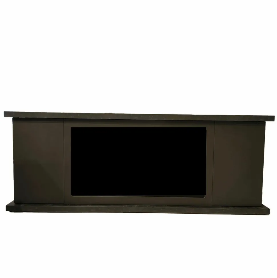 Les portes latérales pratiques et spacieuses offrent un espace d’organisation supplémentaire tout en conservant une apparence nette et ordonnée. Les pieds de nivellement assurent que le meuble cheminée en bois laqué gris foncé r