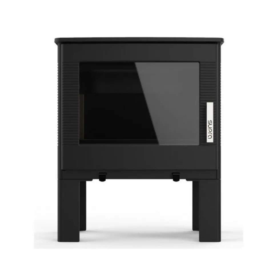 Poêle à bois étanche Gaby – Habillage fonte – Verre céramique haute résistance – Corps de chauffe avec doublage fonte à l’arrière, grille fonte amovible et vermiculite sur les côtés – Double combustion pour une combustion plus efficace et plus propre (taux de CO et poussières minimum) – Système de double entrée d’air réglable (indépendamment l’un de l’autre) : modifier l’entrée d’air secondaire contribue à une meilleure combustion puisqu’elle brûle les gaz imbrûlés par l’air primaire – Intensité de la flamme réglable – Système Vitre Propre – Cendrier grande capacité amovible – Taille de bûches maxi 49 cm – Protection arrière pour une installation rapprochée – Etanche et raccordable : compatible RE 2020 – Prise d’air raccordable sur l’extérieur Ø 100 mm – Régulation manuelle – Raccordement arrière ou dessus Ø 150 mm. Le prix indiqué comprend la TVA à 20%.
