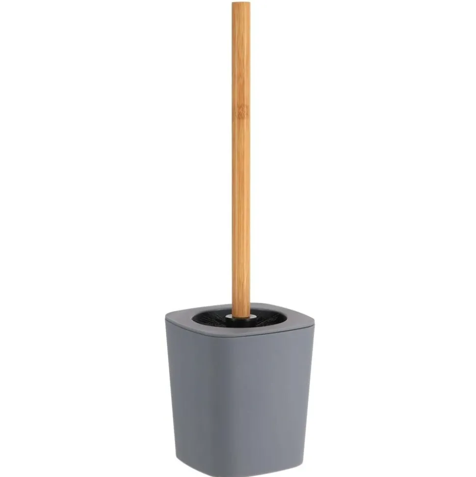 BROSSE WC RUBBER + ABS ET TIGE BAMBOU – GRIS – Tendance