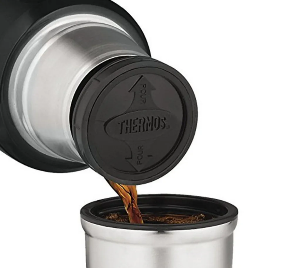 Bouteille isotherme King Thermos 184803. La collection King combine la technologie moderne d’isolation avec une touche nostalgique de par son design. Isolation par vide d’air avec technique d’isolation Thermos pour une durée de conservation maximale, aussi bien chaud que froid. Double parois avec vide d’air. Conserve les boissons au froid et au chaud pendant 24 heures. Bouchon à visser pour verser vos boissons sans l’enlever. Réédition d’une bouteille de 1908. Froid au toucher avec du chaud et sec à l’extérieur avec du froid. Design utlra-compact et léger pour un transport facile : emportez-la partout où vous voulez. Intérieur et extérieur en acier inoxydable incassable. Tasse isolante en acier inoxydable. Poignée latérale pratique pour le transport et le service.