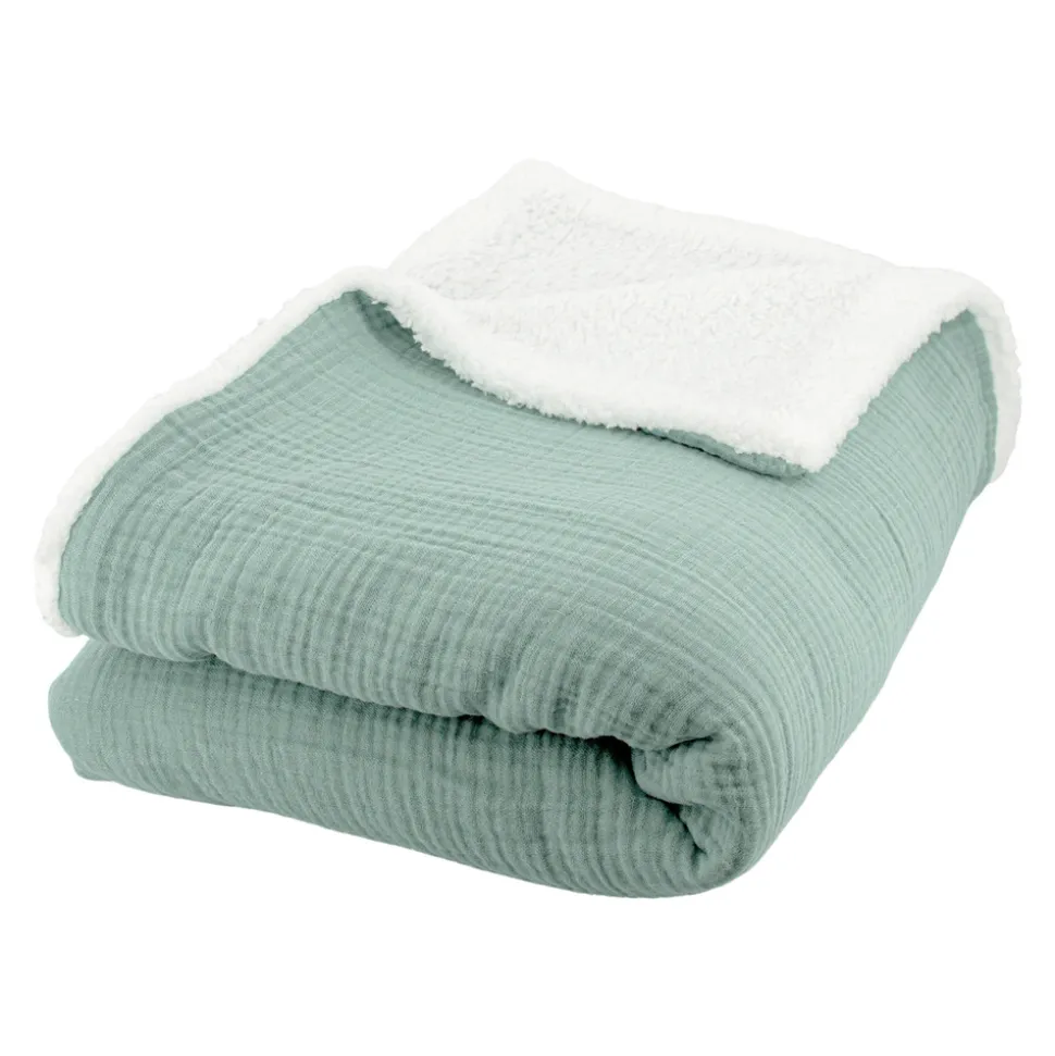 Apportez confort et style à votre intérieur avec ce plaid bi-matière réversible. Idéal pour les soirées cocooning ou pour ajouter une touche élégante à votre canapé ou fauteuil, il combine l’élégance de la gaze de coton et la douceur irrésistible de la sherpa.