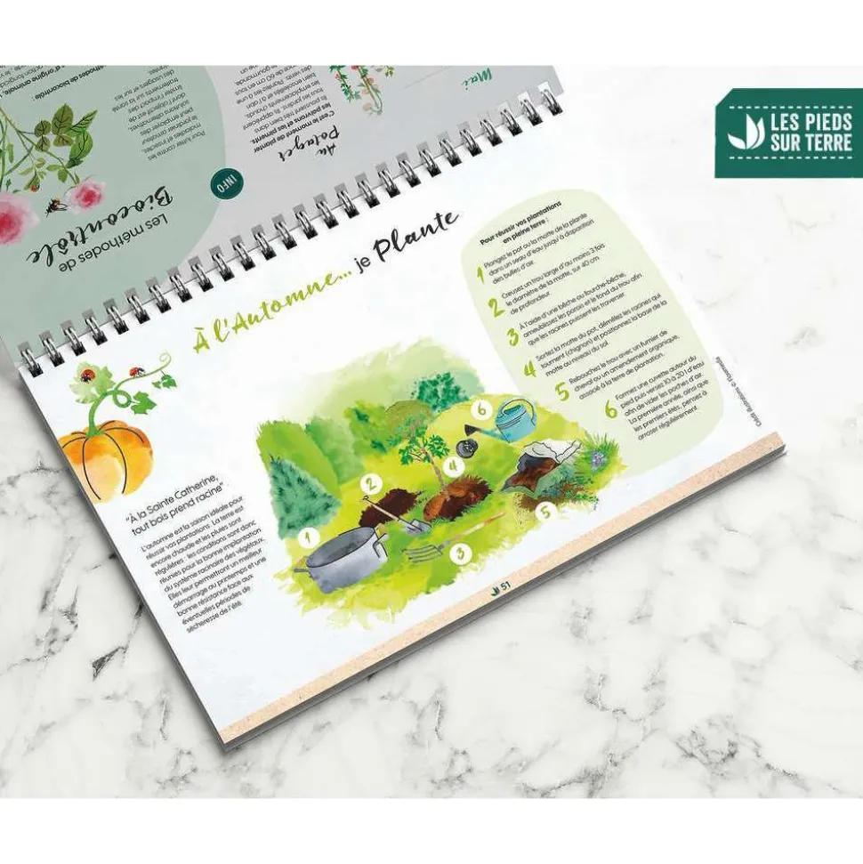 Jardinier débutant, passionné ou chevronné, vous vous intéressez aux écosystèmes, à la biodiversité, aux rythmes de la nature, à l’équilibre du sol, à l’agriculture biologique mais aussi à la préservation des ressources naturelles ? Grâce à ce calendrier perpétuel placé sous l’angle du JARDIN DURABLE, retrouvez au fil des saisons, des mois et des semaines : – La liste des indispensables – Les bons gestes – Des pas à pas – Des recettes maison – Des zooms plante – 52 vidéos conseils Vous pourrez également le compléter avec vos propres observations et astuces, grâce à l’espace disponible chaque semaine pour vos notes personnelles.