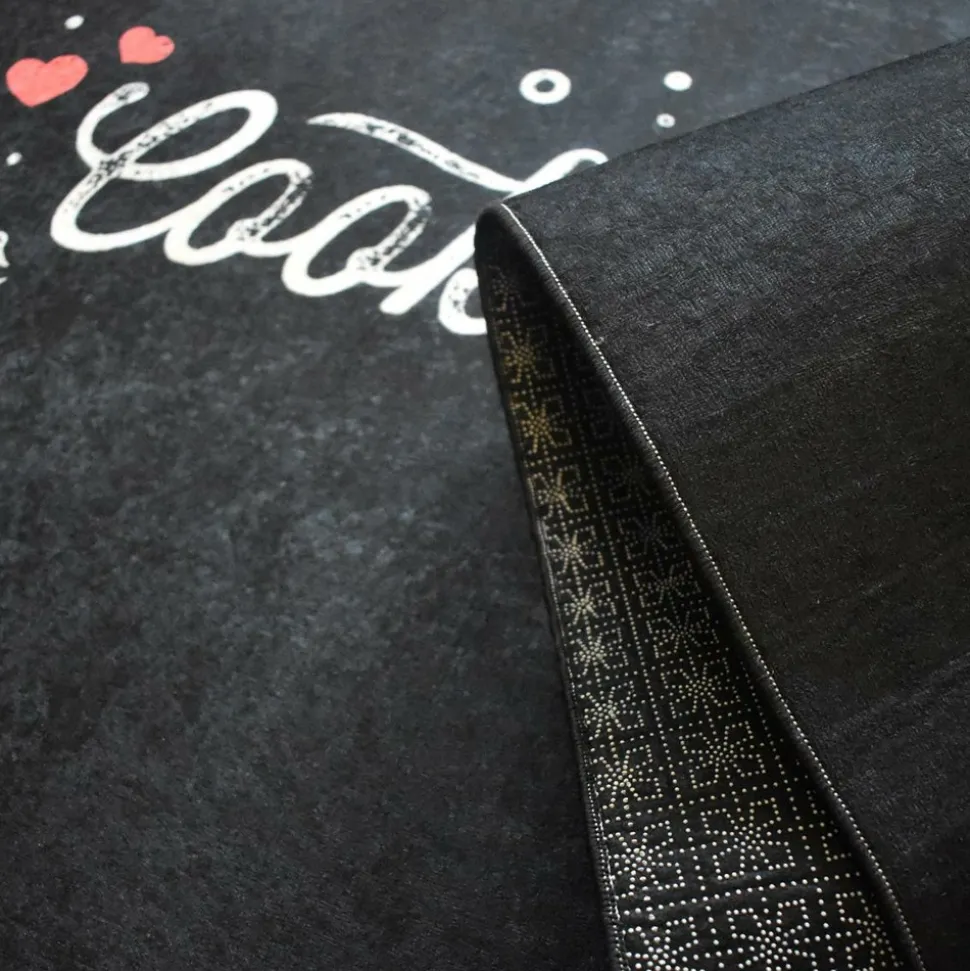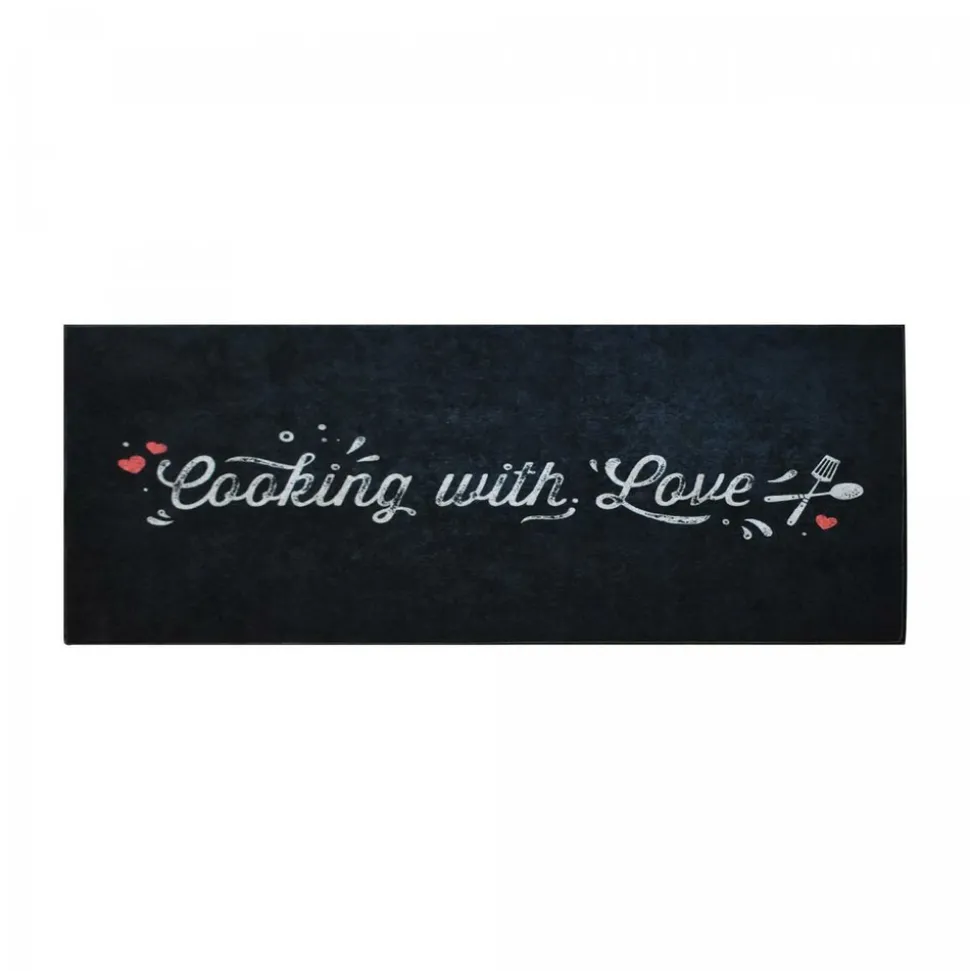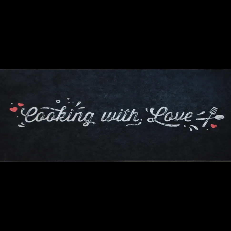 Tapis de cuisine est idéal pour la décoration de la maison. Aux motifs texte, tapis de cuisine a été sélectionné pour son visuel, ses couleurs, mais aussi pour sa qualité. Il habillera à merveille tous types d’intérieur qu’ils soient modernes ou classiques. Ce tapis de cuisine « Cooking with Love » est parfait pour ajouter une touche chaleureuse à votre espace. Son design noir avec inscriptions blanches et petits cœurs rouges apporte du style. Lavable en machine et antidérapant, il assure confort et sécurité.