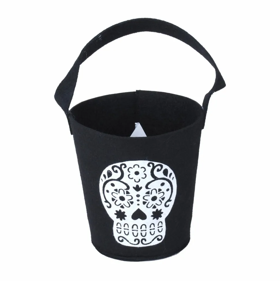 Partez à la chasse aux bonbons d’Halloween avec ce seau à tête de squelette.