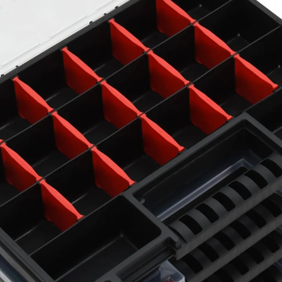 Cet ensemble de boîtes d’assortiment pratique, comprenant des séparateurs réglables, est une excellente aide dans votre garage, votre atelier et des endroits similaires ! Couvercle transparent : le couvercle transparent offre une vue du contenu intérieur. Ainsi, vous pouvez facilement reconnaître et trouver des boulons, des écrous, des clous et d’autres petites pièces.Séparateurs réglables : la boîte assortie, comprenant des séparateurs réglables, peut être divisée en plusieurs compartiments, ce qui garantit que tout se trouve à sa place.Large application : cet organisateur d’outils pratique est certainement un excellent choix pour les personnes qui apprécient la propreté et l’ordre pendant le bricolage et l’artisanat et même pour les professionnels au lieu de travail.