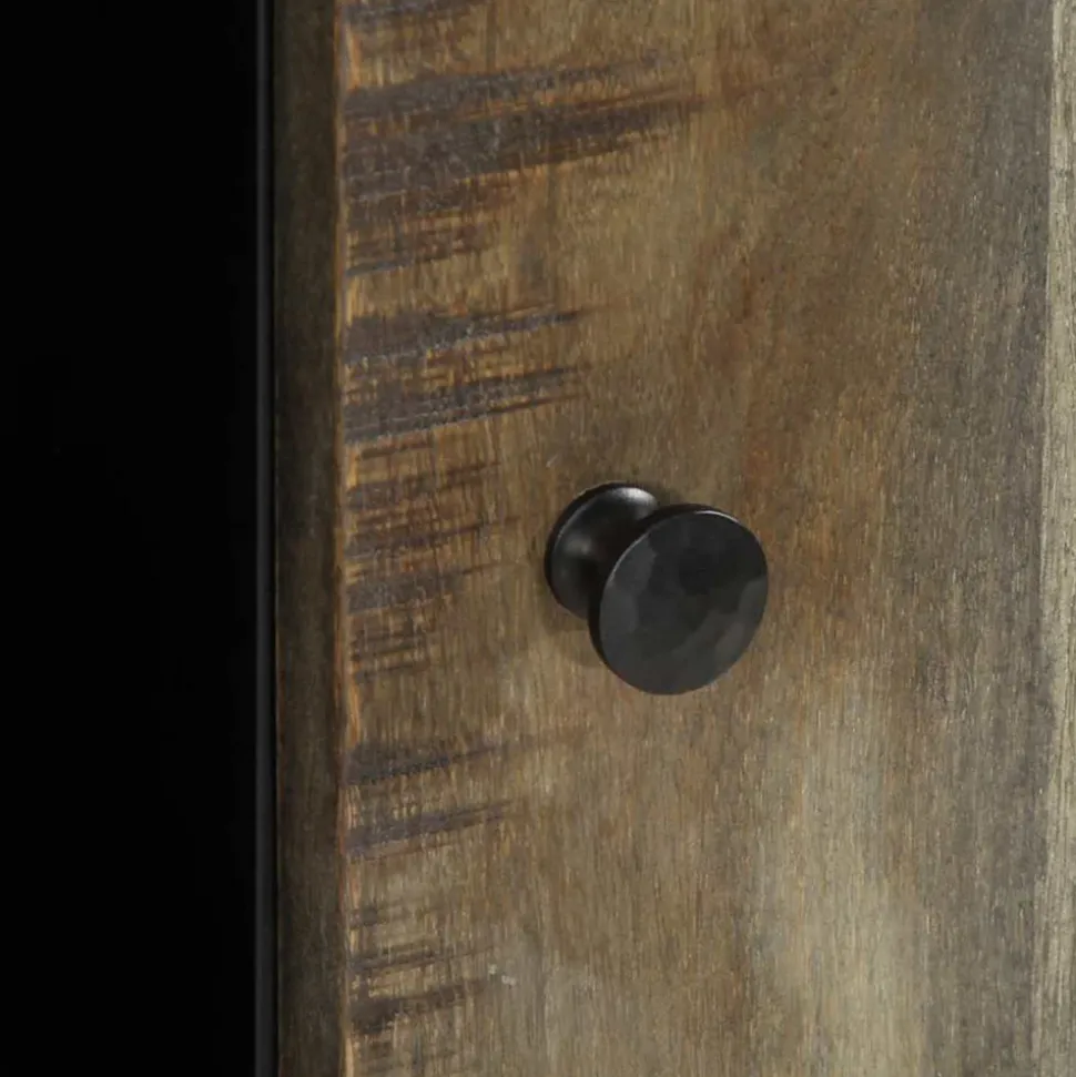 Ce buffet en bois offre à la fois un attrait décoratif et un rangement pratique, ce qui en fait un complément idéal pour votre maison. Matériau robuste et stable : le bois de manguier massif, un bois dur tropical robuste, est très apprécié pour la fabrication de meubles en raison de sa durabilité et de sa solidité exceptionnelles. Ses beaux grains de bois rendent chaque meuble unique et légèrement différent de l’autre.Grand espace de rangement : le buffet offre un grand espace de rangement pour les essentiels de la salle à manger et autres articles ménagers afin de les garder organisés et à portée de main.Motif sculpté à la main : le motif délicatement sculpté donne au buffet un aspect unique.Dessus de table robuste : le buffet est doté d’un plateau robuste sur lequel vous pouvez placer vos objets de décoration, vos albums photos ou vos petites plantes.Multifonctionnel : vous pouvez utiliser ce buffet dans une chambre ou un salon, ou simplement comme armoire de rangement élégante dans les salles d’eau, les entrées, les couloirs et les bureaux, les salles à manger et autres espaces de vie. Bon à savoir :Chaque article est unique, avec des variations de couleurs et de grains. La livraison est aléatoire, ce qui garantit l’exclusivité et l’individualité de votre produit. Attention :Pour éviter qu’il ne bascule, ce produit doit être utilisé avec le dispositif de fixation murale fourni.