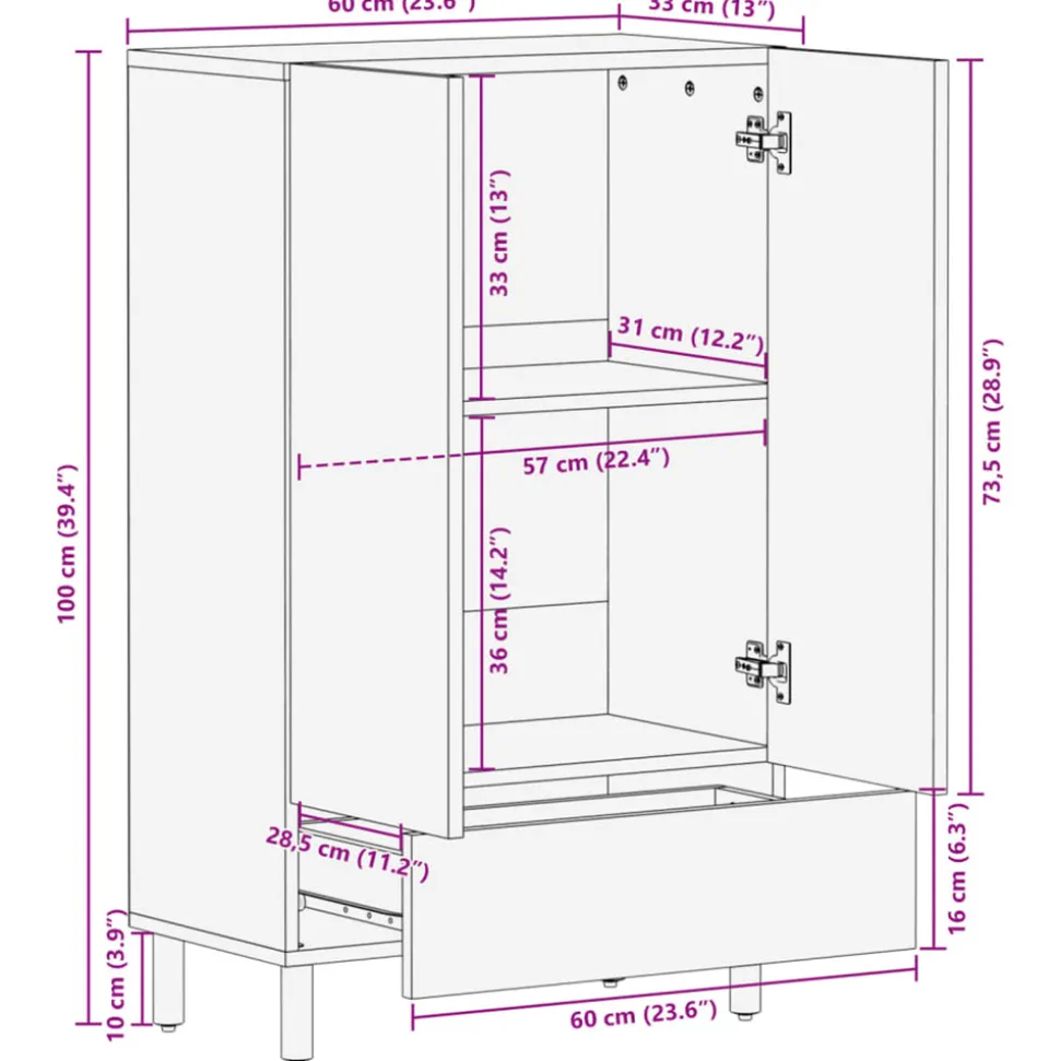 - Matériau : bois d’ingénierie, bois de manguier massif, laiton