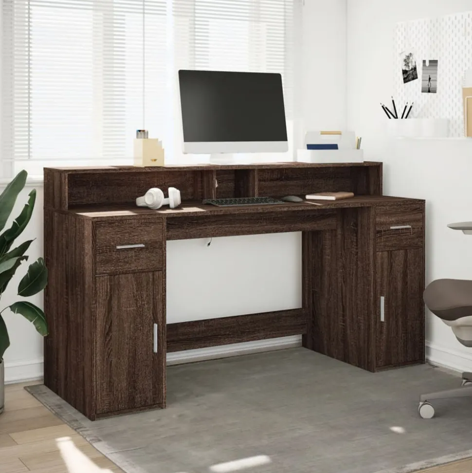 Avec un grand espace de rangement, une construction durable et des options d’éclairage LED, ce bureau est parfait pour créer un espace de travail ou de jeu organisé et élégant. Matériau stable et durable : le bois d’ingénierie est un matériau durable et stable dont la surface lisse résiste à l’humidité, à la déformation et au fendillement, ce qui en fait un choix fiable pour divers projets.Lampes LED RVB pour une ambiance agréable : ce bureau est équipé de lampes LED qui peuvent être facilement réglées pour créer un spectacle lumineux personnalisé. Vous pouvez personnaliser les modes, les couleurs et la luminosité pour améliorer l’ambiance de votre espace intérieur.Grand espace de rangement : le bureau comprend des compartiments et des tiroirs, offrant de nombreuses options de rangement pour tous vos articles de bureau et vous aidant à garder votre espace de travail organisé et sans encombrement.Entretien facile : grâce à sa surface lisse, le bureau LED est facile à nettoyer avec un chiffon sec et doux et nécessite moins d’entretien. Veuillez débrancher le produit de l’alimentation électrique ou éteindre l’alimentation électrique lors du nettoyage et lorsqu’il n’est pas utilisé. Attention :Pour éviter qu’il ne bascule, ce produit doit être utilisé avec le dispositif de fixation murale fourni. Bon à savoir :Ce produit est doté d’un connecteur USB qui nécessite une source d’alimentation USB de 5V certifiée (non incluse).