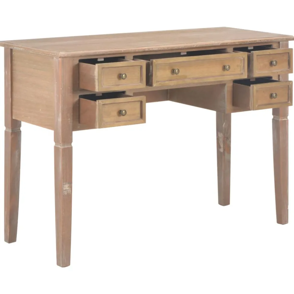 Ce bureau doté d’un design simple mais intemporel, ajoutera une touche romantique à votre bureau ou chambre. Ce bureau durable comporte cinq grands tiroirs à papeterie offrant assez d’espace pour stocker et organiser vos fichiers, papiers, documents et autres fournitures de bureau. Le bureau offre également suffisamment d’espace pour vos ornements ou autres effets personnels. Ce bureau robuste est fabriqué en MDF et en bois de pin de haute qualité et est peint en marron.
