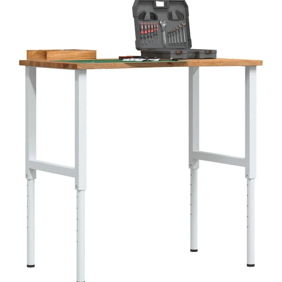 L’établi est une aide précieuse si vous souhaitez terminer des travaux de réparation ou réaliser vos rêves de bricolage ! Matériau robuste et stable : le bois de chêne massif est connu pour sa solidité, sa durabilité et la beauté de son grain, ce qui en fait un matériau idéal pour les meubles de longue durée. Sa résistance naturelle aux insectes et aux champignons permet aux meubles en chêne de rester attrayants et fonctionnels pendant des années.Cadre stable et durable : le cadre en métal enduit de poudre est solide, stable, durable et résistant à la corrosion et aux intempéries, ce qui garantit des performances durables.Grande surface de travail : la table de travail offre une grande surface de travail pour placer vos perceuses, tambours de câble et autres accessoires d’outillage.Utilisation polyvalente : doté d’un design simple et épuré, vous pouvez l’utiliser comme établi ou comme table de travail selon vos besoins. Le poste de travail est conçu pour être un meuble pratique et commode. Bon à savoir :Chaque article est unique, avec des variations de couleurs et de grains. La livraison est aléatoire, ce qui garantit l’exclusivité et l’individualité de votre produit.Nous recommandons d’utiliser un tournevis plutôt qu’une perceuse électrique pour éviter que le bois ne se fissure lors de la fixation des pieds. Attention :Ce dessus de table n’a pas de trous pré-percés et les vis ne sont pas incluses. Les trous doivent donc être pré-percés et les vis doivent être achetées avant d’assembler cette table de travail. Dimensions totales : 100 x 60 x (71,5-98) cm (L x l x H)Assemblage requis : ouiDessus de table :Couleur : marron clairMatériau : bois de chêne massif, finement poncé avec un vernis légerÉpaisseur du plan de travail : 2,5 cmForme : rectangulairePieds de la table :Couleur : grisMatériau : métal enduit de poudreDimensions : 55 x (69-95,5) cm (l x H)Taille de vis recommandée (non incluses) : 5 x 25 mm (Diamètre x L), max. 16 pcsLa livraison contient :1 x dessus de table1 x pied de table