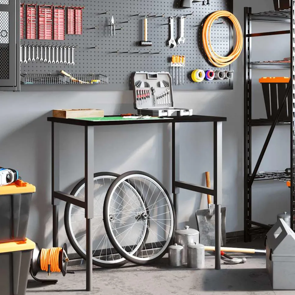 L’établi est une aide précieuse si vous souhaitez terminer des travaux de réparation ou réaliser vos rêves de bricolage ! Matériau robuste et stable : le bois de chêne massif est connu pour sa solidité, sa durabilité et la beauté de son grain, ce qui en fait un matériau idéal pour les meubles de longue durée. Sa résistance naturelle aux insectes et aux champignons permet aux meubles en chêne de rester attrayants et fonctionnels pendant des années.Cadre stable et durable : le cadre en métal enduit de poudre est solide, stable, durable et résistant à la corrosion et aux intempéries, ce qui garantit des performances durables.Grande surface de travail : la table de travail offre une grande surface de travail pour placer vos perceuses, tambours de câble et autres accessoires d’outillage.Utilisation polyvalente : doté d’un design simple et épuré, vous pouvez l’utiliser comme établi ou comme table de travail selon vos besoins. Le poste de travail est conçu pour être un meuble pratique et commode. Bon à savoir :Chaque article est unique, avec des variations de couleurs et de grains. La livraison est aléatoire, ce qui garantit l’exclusivité et l’individualité de votre produit.Nous recommandons d’utiliser un tournevis plutôt qu’une perceuse électrique pour éviter que le bois ne se fissure lors de la fixation des pieds. Attention :Ce dessus de table n’a pas de trous pré-percés et les vis ne sont pas incluses. Les trous doivent donc être pré-percés et les vis doivent être achetées avant d’assembler cette table de travail. Dimensions totales : 100 x 60 x (71,5-98) cm (L x l x H)Assemblage requis : ouiDessus de table :Couleur : marron foncéMatériau : bois de chêne massif, finement poncé avec une finition marron foncéÉpaisseur du plan de travail : 2,5 cmForme : rectangulairePieds de la table :Couleur : noirMatériau : métal enduit de poudreDimensions : 55 x (69-95,5) cm (l x H)Taille de vis recommandée (non incluses) : 5 x 25 mm (Diamètre x L), max. 16 pcsLa livraison contient :1 x dessus de table1 x pied de table