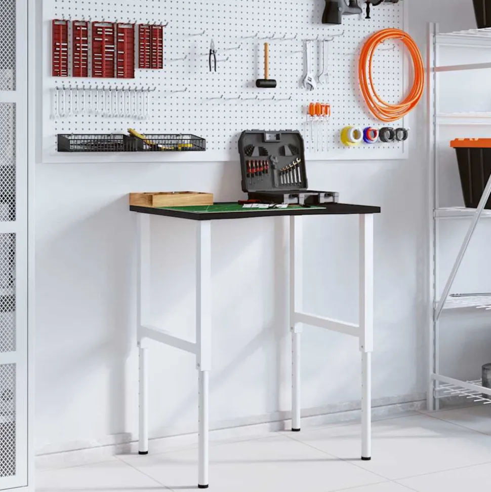L’établi est une aide précieuse si vous souhaitez terminer des travaux de réparation ou réaliser vos rêves de bricolage ! Matériau robuste et stable : le bois de chêne massif est connu pour sa solidité, sa durabilité et la beauté de son grain, ce qui en fait un matériau idéal pour les meubles de longue durée. Sa résistance naturelle aux insectes et aux champignons permet aux meubles en chêne de rester attrayants et fonctionnels pendant des années.Cadre stable et durable : le cadre en métal enduit de poudre est solide, stable, durable et résistant à la corrosion et aux intempéries, ce qui garantit des performances durables.Grande surface de travail : la table de travail offre une grande surface de travail pour placer vos perceuses, tambours de câble et autres accessoires d’outillage.Utilisation polyvalente : doté d’un design simple et épuré, vous pouvez l’utiliser comme établi ou comme table de travail selon vos besoins. Le poste de travail est conçu pour être un meuble pratique et commode. Bon à savoir :Chaque article est unique, avec des variations de couleurs et de grains. La livraison est aléatoire, ce qui garantit l’exclusivité et l’individualité de votre produit.Nous recommandons d’utiliser un tournevis plutôt qu’une perceuse électrique pour éviter que le bois ne se fissure lors de la fixation des pieds. Attention :Ce dessus de table n’a pas de trous pré-percés et les vis ne sont pas incluses. Les trous doivent donc être pré-percés et les vis doivent être achetées avant d’assembler cette table de travail. Dimensions totales : 80 x 60 x (71,5-98) cm (L x l x H)Assemblage requis : ouiDessus de table :Couleur : marron foncéMatériau : bois de chêne massif, finement poncé avec une finition marron foncéÉpaisseur du plan de travail : 2,5 cmForme : rectangulairePieds de la table :Couleur : grisMatériau : métal enduit de poudreDimensions : 55 x (69-95,5) cm (l x H)Taille de vis recommandée (non incluses) : 5 x 25 mm (Diamètre x L), max. 16 pcsLa livraison contient :1 x dessus de table1 x pied de table