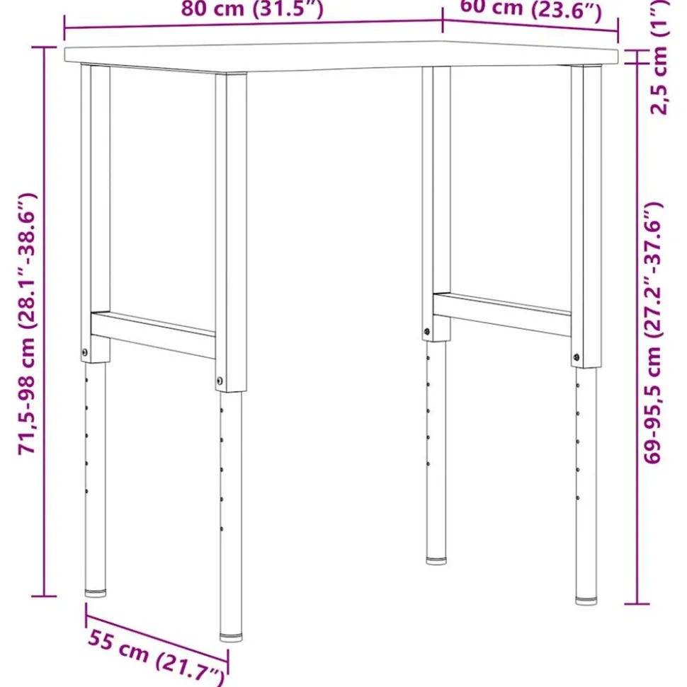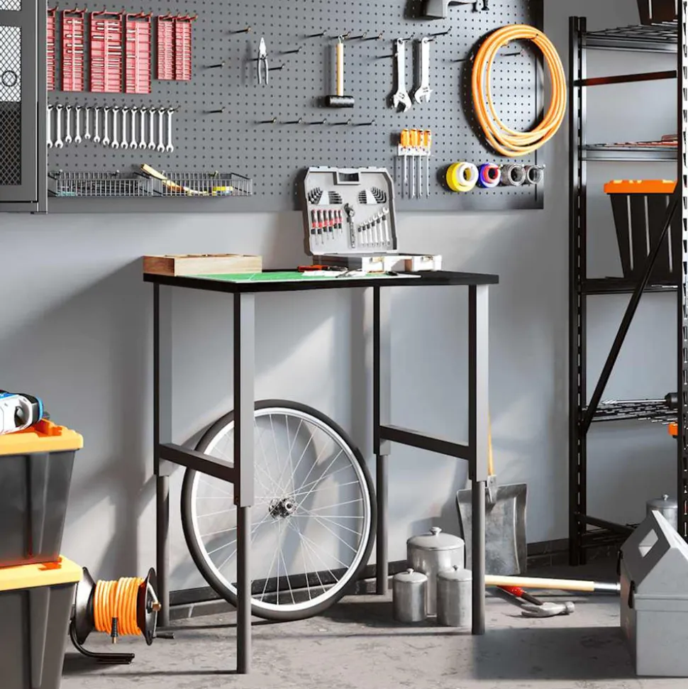L’établi est une aide précieuse si vous souhaitez terminer des travaux de réparation ou réaliser vos rêves de bricolage ! Matériau robuste et stable : le bois de chêne massif est connu pour sa solidité, sa durabilité et la beauté de son grain, ce qui en fait un matériau idéal pour les meubles de longue durée. Sa résistance naturelle aux insectes et aux champignons permet aux meubles en chêne de rester attrayants et fonctionnels pendant des années.Cadre stable et durable : le cadre en métal enduit de poudre est solide, stable, durable et résistant à la corrosion et aux intempéries, ce qui garantit des performances durables.Grande surface de travail : la table de travail offre une grande surface de travail pour placer vos perceuses, tambours de câble et autres accessoires d’outillage.Utilisation polyvalente : doté d’un design simple et épuré, vous pouvez l’utiliser comme établi ou comme table de travail selon vos besoins. Le poste de travail est conçu pour être un meuble pratique et commode. Bon à savoir :Chaque article est unique, avec des variations de couleurs et de grains. La livraison est aléatoire, ce qui garantit l’exclusivité et l’individualité de votre produit.Nous recommandons d’utiliser un tournevis plutôt qu’une perceuse électrique pour éviter que le bois ne se fissure lors de la fixation des pieds. Attention :Ce dessus de table n’a pas de trous pré-percés et les vis ne sont pas incluses. Les trous doivent donc être pré-percés et les vis doivent être achetées avant d’assembler cette table de travail. Dimensions totales : 80 x 60 x (71,5-98) cm (L x l x H)Assemblage requis : ouiDessus de table :Couleur : marron foncéMatériau : bois de chêne massif, finement poncé avec une finition marron foncéÉpaisseur du plan de travail : 2,5 cmForme : rectangulairePieds de la table :Couleur : noirMatériau : métal enduit de poudreDimensions : 55 x (69-95,5) cm (l x H)Taille de vis recommandée (non incluses) : 5 x 25 mm (Diamètre x L), max. 16 pcsLa livraison contient :1 x dessus de table1 x pied de table